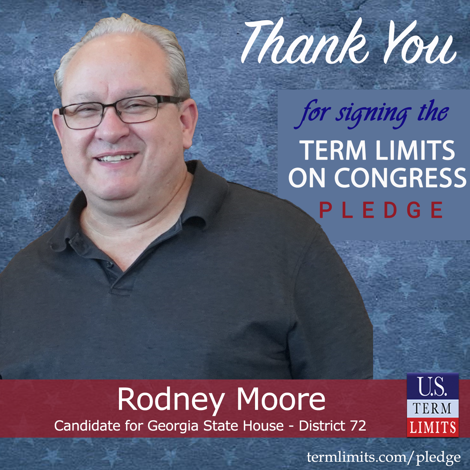 Ephesus, GA – U.S. Term Limits (USTL), the leader in the national, non-partisan movement to limit terms for elected officials, is gathering support from state lawmakers across the nation. Its mission is to get 34 states to apply for an amendment proposal convention specific to term limits on Congress. Georgia state house candidate, Rodney Moore (District 72), has committed support for term limits on Congress by signing the term limits convention pledge. Moore is the first signer in this race.