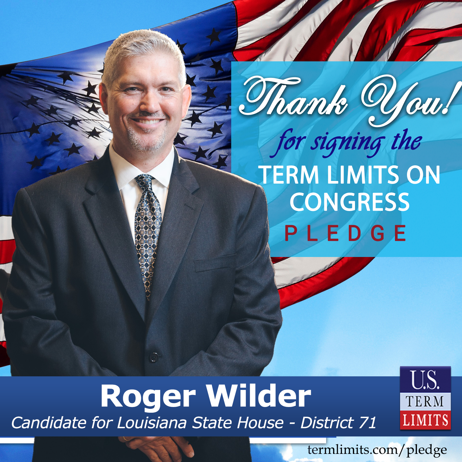 Denham Springs, LA – U.S. Term Limits (USTL), the leader in the national, non-partisan movement to limit terms for elected officials, is gathering support from state lawmakers across the nation. Its mission is to get 34 states to apply for an amendment proposal convention specific to term limits on Congress. Louisiana state house candidate, Roger Wilder (district 71), has committed support for term limits on Congress by signing the Term Limits Convention pledge. Previously, candidate Walley Avara also signed the pledge in this race.