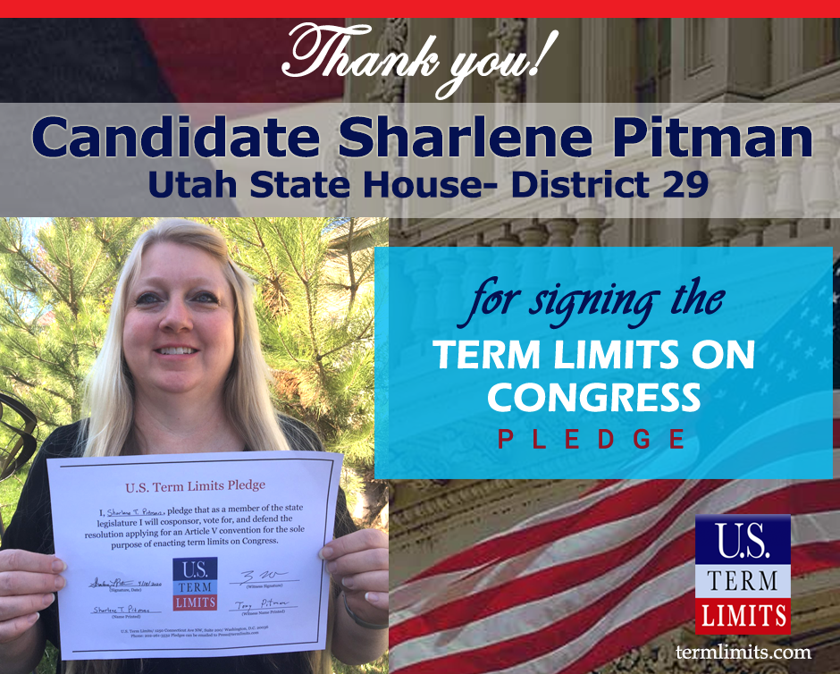 The U.S. Term Limits pledge is provided to candidates and members of state legislatures. It reads, “I pledge that, as a member of the state legislature, I will cosponsor, vote for, and defend the resolution applying for an Article V convention for the limited purpose of enacting term limits on Congress.”