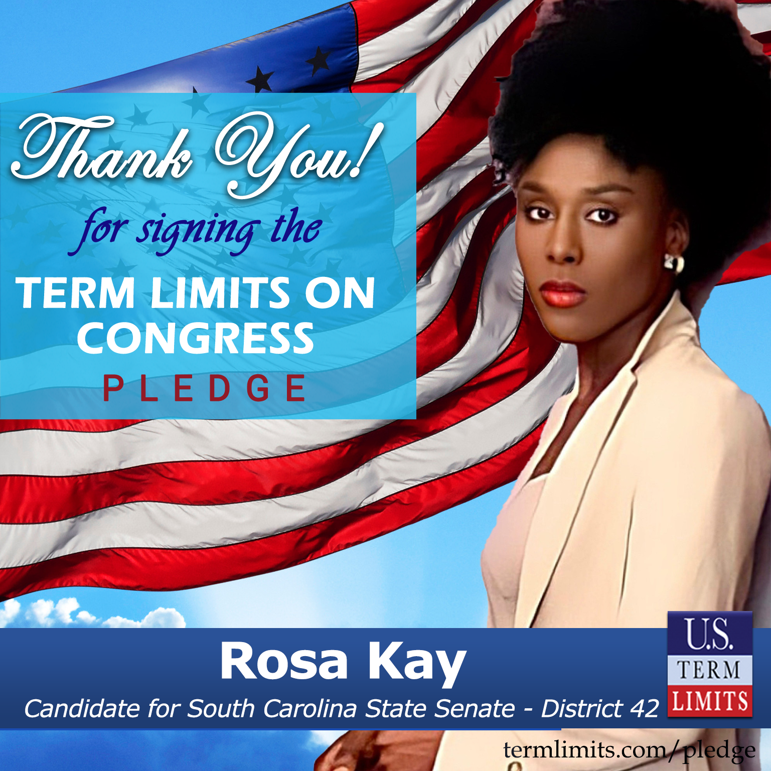 Charleston, SC – U.S. Term Limits (USTL), the leader in the national, non-partisan movement to limit terms for elected officials, is gathering support from state lawmakers across the nation. Its mission is to get 34 states to apply for an amendment proposal convention specific to term limits on Congress. South Carolina state senate candidate, Rosamond Kamara (District 42), has committed support for term limits on Congress by signing the term limits convention pledge.