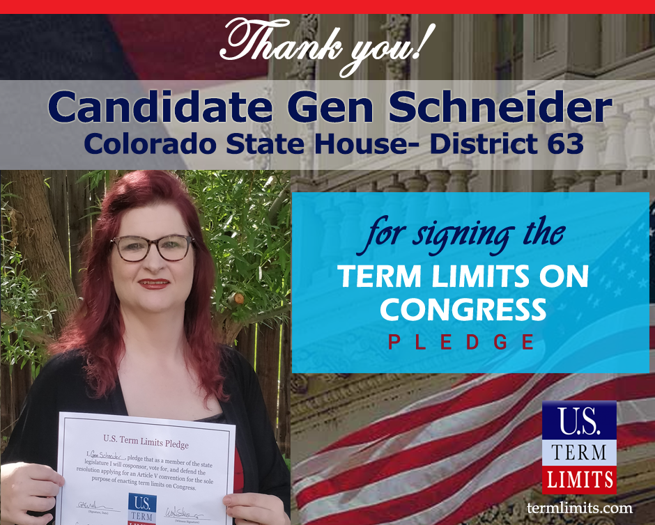 The U.S. Term Limits pledge is provided to candidates and members of state legislatures. It reads, “I pledge that, as a member of the state legislature, I will cosponsor, vote for, and defend the resolution applying for an Article V convention for the limited purpose of enacting term limits on Congress.”