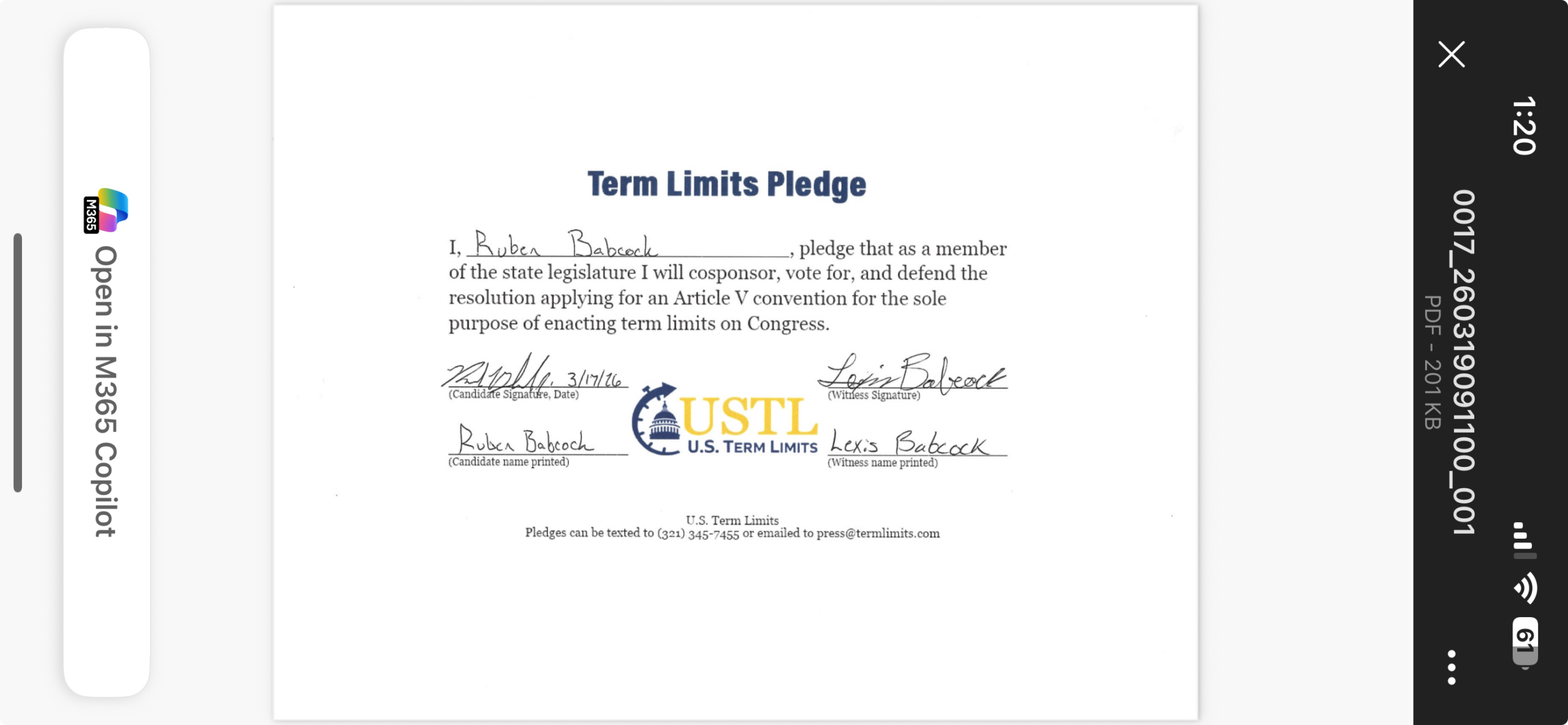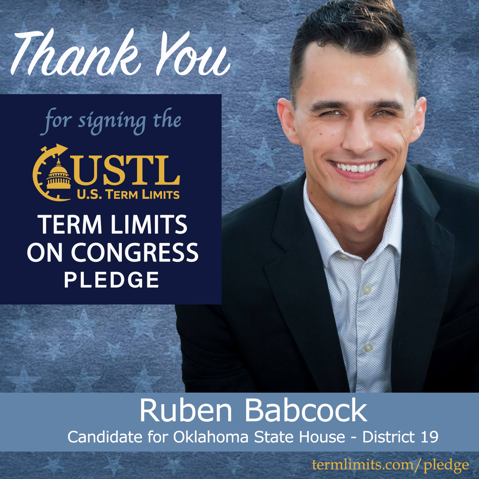 Hugo, OK – U.S. Term Limits (USTL), the leader in the national, non-partisan movement to limit terms for elected officials, is gathering support from state lawmakers across the nation. Its mission is to get 34 states to apply for an amendment proposal convention specific to term limits on Congress. 2026 Oklahoma state house candidate, Ruben Babcock (district 19), has committed support for term limits on Congress by signing the term limits convention pledge. Previously, Rep. Justin Humphrey and candidate Derek Porter also signed.