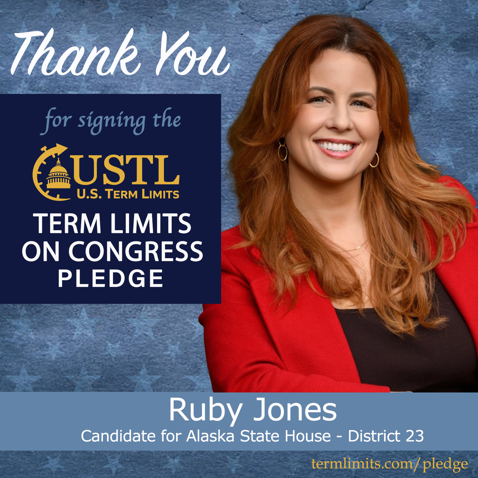 Anchorage, AK – U.S. Term Limits (USTL), the leader in the national, non-partisan movement to limit terms for elected officials, is gathering support from state lawmakers across the nation. Its mission is to get 34 states to apply for an amendment proposal convention specific to term limits on Congress. 2026 Alaska state house candidate, Ruby Jones (district 23), has committed support for term limits on Congress by signing the term limits convention pledge.