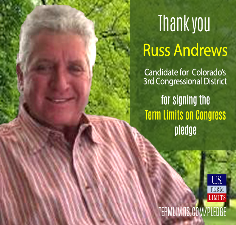 Washington D.C. – U.S. Term Limits (USTL), the leader in the non-partisan national movement to limit terms for elected officials, praises 2024 U.S. house candidate for Colorado, Russ Andrews (District 3), for signing the pledge for an amendment to term limit Congress. Previously, candidate Adam Frisch also signed the pledge in this race.