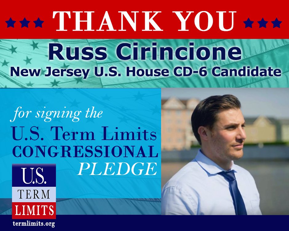 Washington, D.C. – U.S. Term Limits (USTL), the leader in the non-partisan national movement to limit terms for elected officials, praises Russ Cirincione, 2020 U.S. House candidate from New Jersey’s 6th congressional district, for signing the pledge for an amendment to term limit Congress. The primary for this race will be held June 2, 2020.