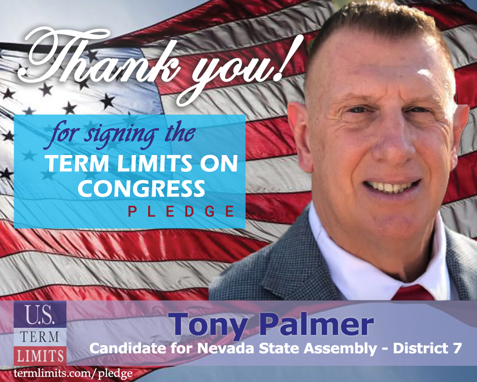 The U.S. Term Limits amendment pledge is provided to every announced candidate for federal office. It reads, “I pledge that as a member of Congress, I will cosponsor and vote for the U.S. Term Limits amendment of three (3) House terms and two (2) Senate terms and no longer limit.”
