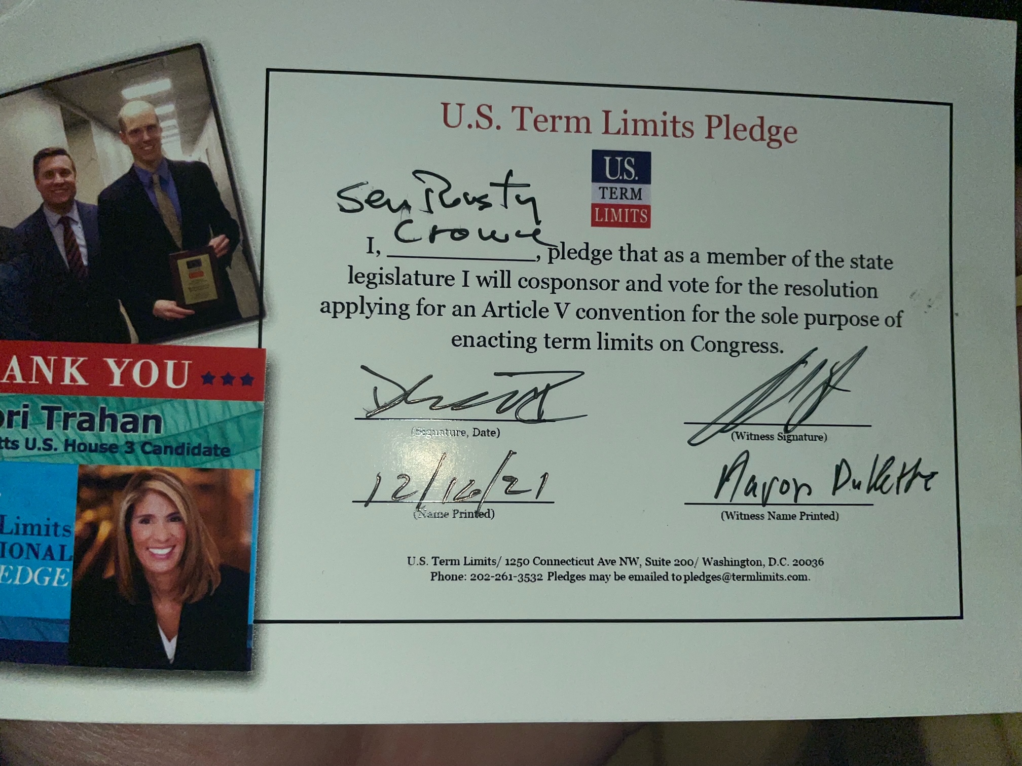 Senator Rusty Crowe Pledges to Support Congressional Term Limits
