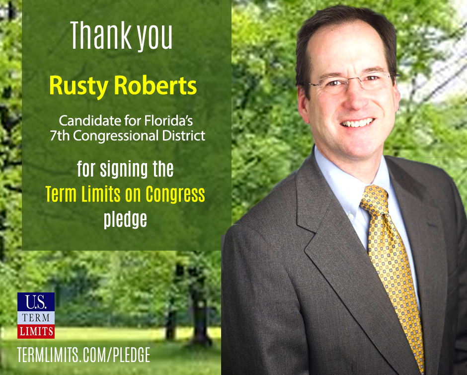 Washington D.C. – U.S. Term Limits (USTL), the leader in the non-partisan national movement to limit terms for elected officials, praises 2022 U.S. house candidate for Florida, Rusty Roberts (district 7), for signing the pledge for an amendment to term limit Congress. Previously, candidates Cory Mills, Scott Sturgill, Erika Benfield and Anthony Sabatini also signed the pledge.