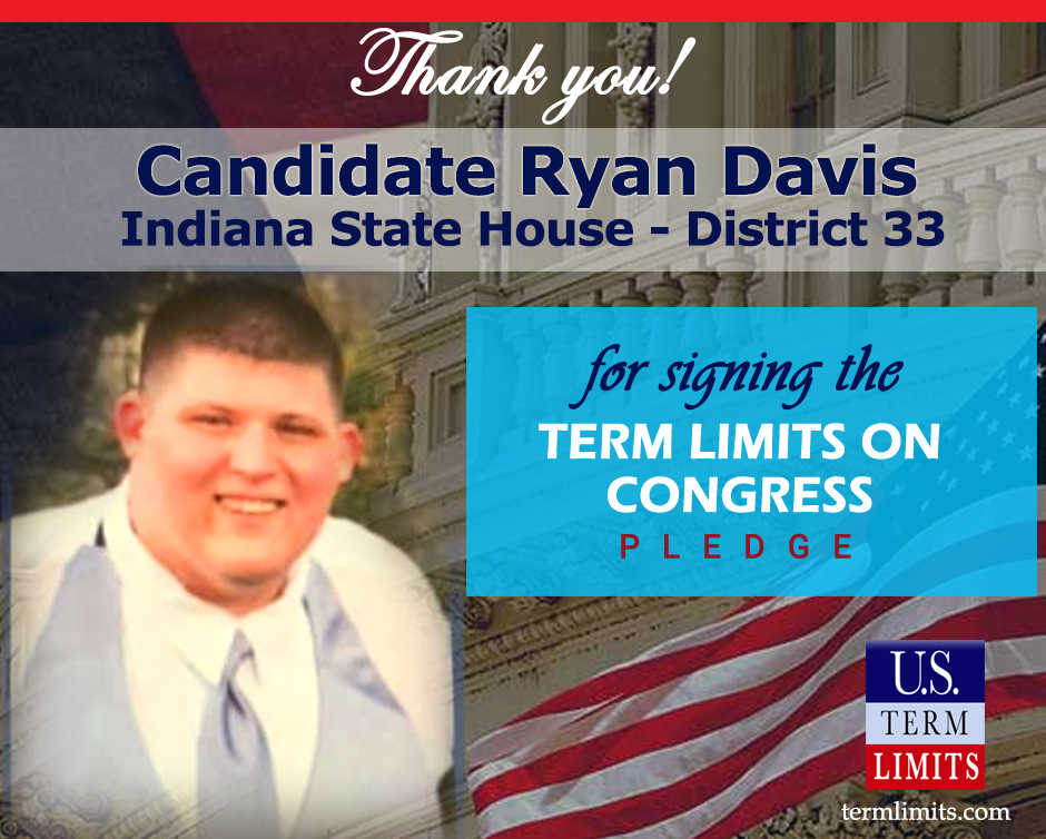Washington, D.C. – U.S. Term Limits (USTL), the leader in the national, non-partisan movement to limit terms for elected officials, is gathering support from state lawmakers across the nation. Its mission is to get 34 states to apply for an amendment proposal convention specific to term limits on Congress. 2020 Indiana house candidate Ryan Davis (district 33), has committed support for term limits on Congress by signing the Term Limits Convention pledge. Davis is the first signer is this race. The primary election is scheduled for June 2, 2020.