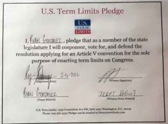 Ryan Gonzalez Pledges to Support Congressional Term Limits