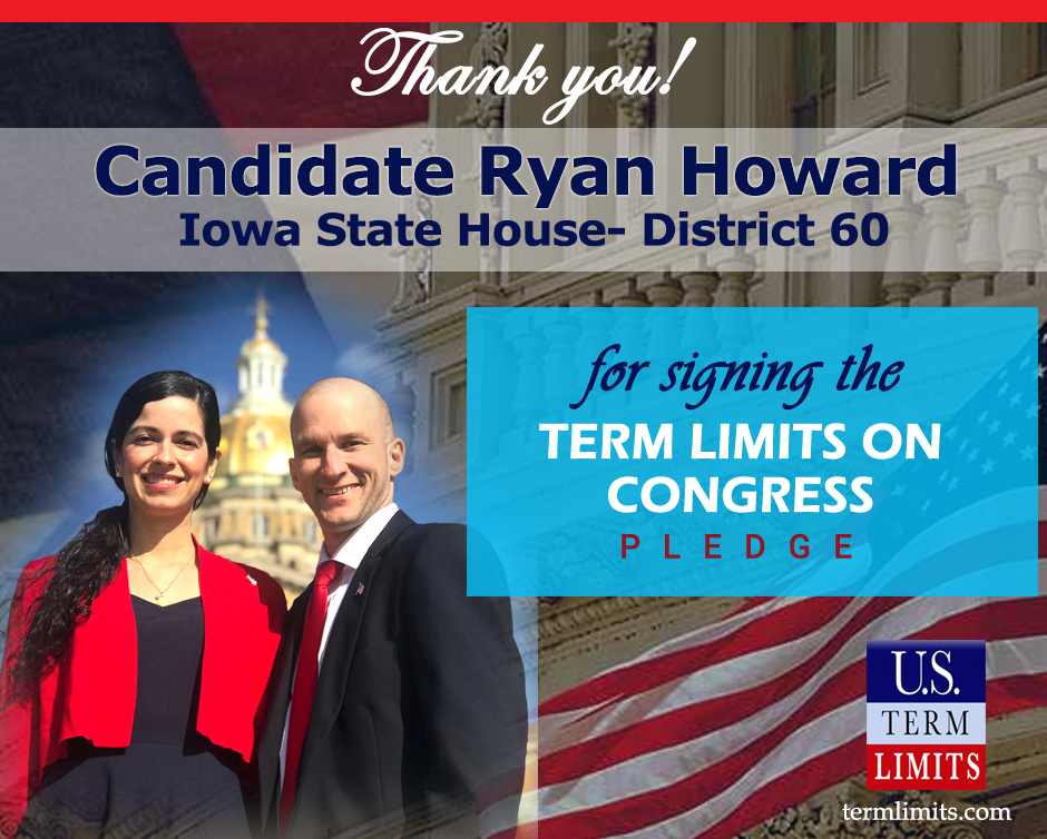 Washington, D.C. – U.S. Term Limits (USTL), the leader in the national, non-partisan movement to limit terms for elected officials, is gathering support from state lawmakers across the nation. Its mission is to get 34 states to apply for an amendment proposal convention specific to term limits on Congress. 2020 Iowa state house candidate Ryan Howard (district 60), has committed support for term limits on Congress by signing the Term Limits Convention pledge. Howard is the first signer in this race. The primary election is scheduled for June 2, 2020.