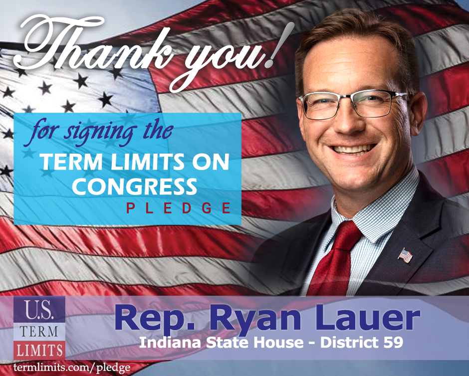 Columbus, IN – U.S. Term Limits (USTL), the leader in the national, non-partisan movement to limit terms for elected officials, is gathering support from state lawmakers across the nation. Its mission is to get 34 states to apply for an amendment proposal convention specific to term limits on Congress. Indiana State Rep. Ryan Lauer (district 59) has committed support for term limits on Congress by signing the Term Limits Convention pledge.