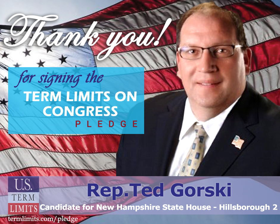The U.S. Term Limits pledge is provided to candidates and members of state legislatures. It reads, “I pledge that, as a member of the state legislature, I will cosponsor, vote for, and defend the resolution applying for an Article V convention for the limited purpose of enacting term limits on Congress.”