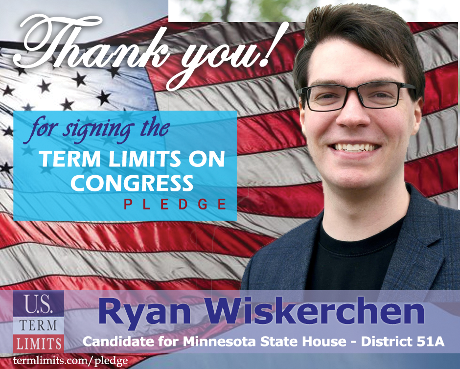 Minneapolis, MN – U.S. Term Limits (USTL), the leader in the national, non-partisan movement to limit terms for elected officials, is gathering support from state lawmakers across the nation. Its mission is to get 34 states to apply for an amendment proposal convention specific to term limits on Congress. Minnesota state house candidate, Ryan Wiskerchen (district 51A) has committed support for term limits on Congress by signing the Term Limits Convention pledge. Wiskerchen is the first signer in this race.