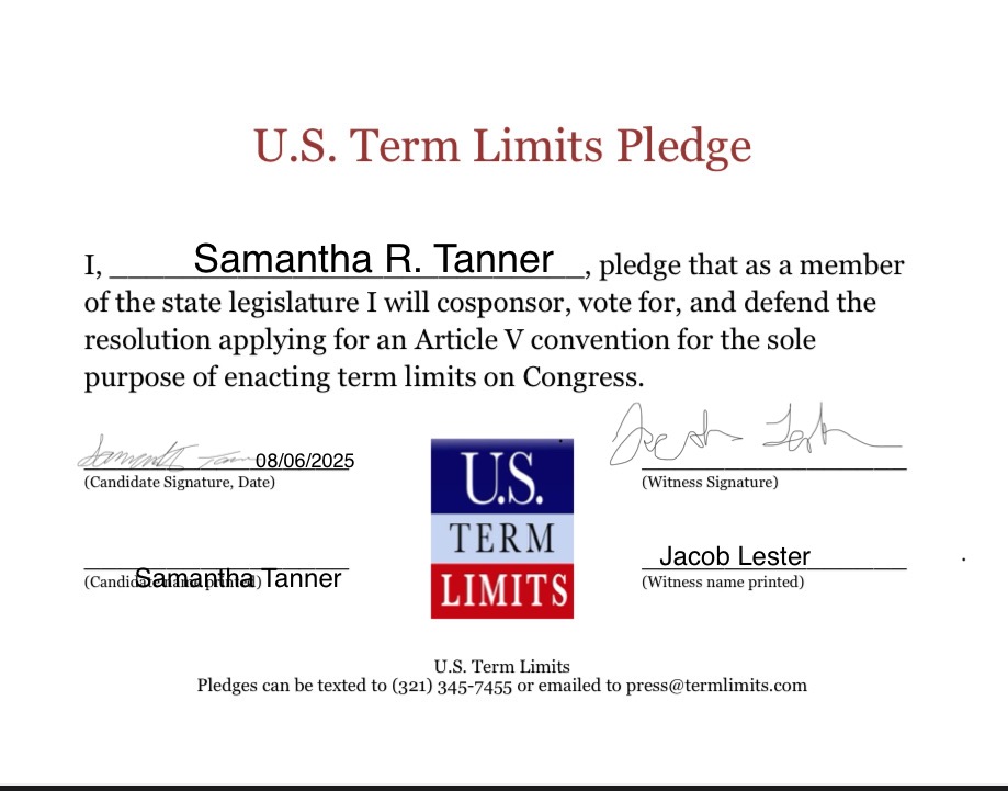 Samantha Tanner Pledges to Support Congressional Term Limits