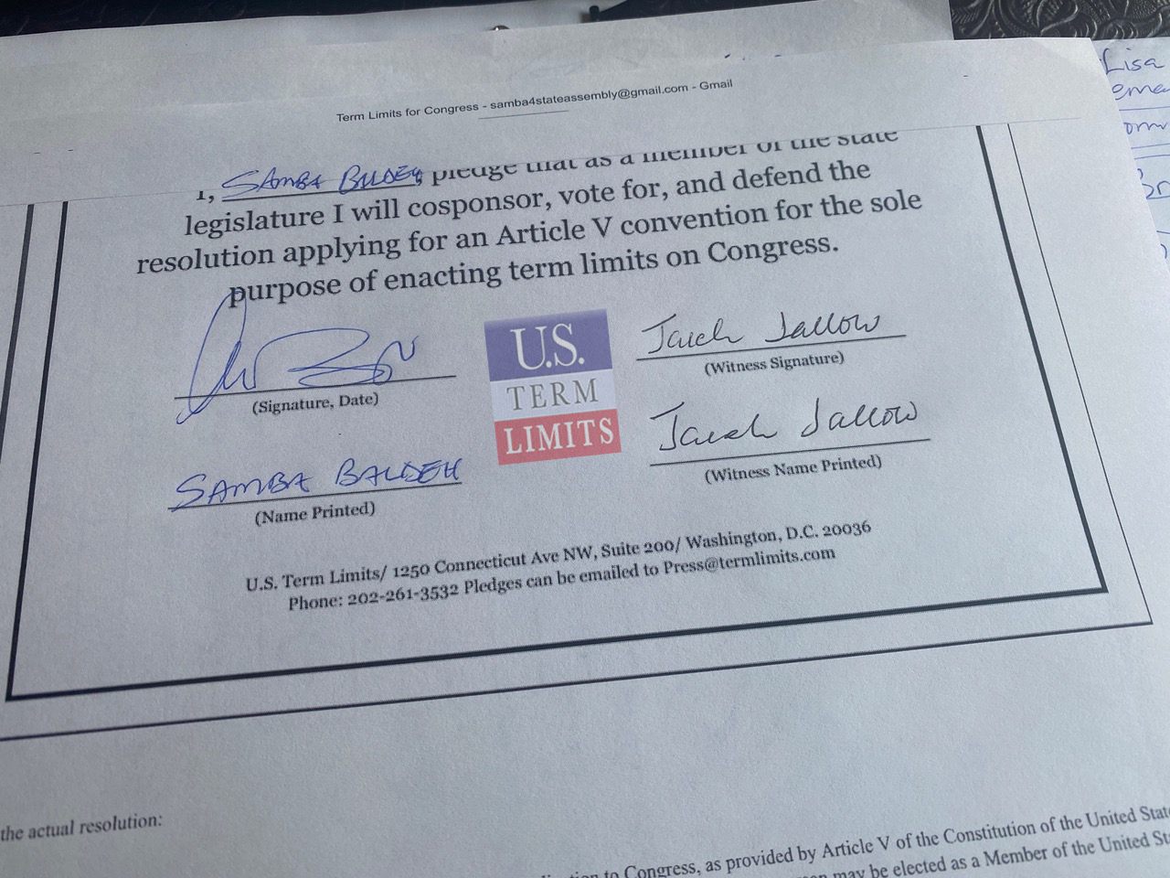 USTL President, Philip Blumel, commented on Baldeh’s pledge saying, “Sambah’s support of term limits shows that there are individuals who are willing to listen to the majority of voters who want term limits and America needs a Congress that will be served by citizen legislators, not career politicians.”