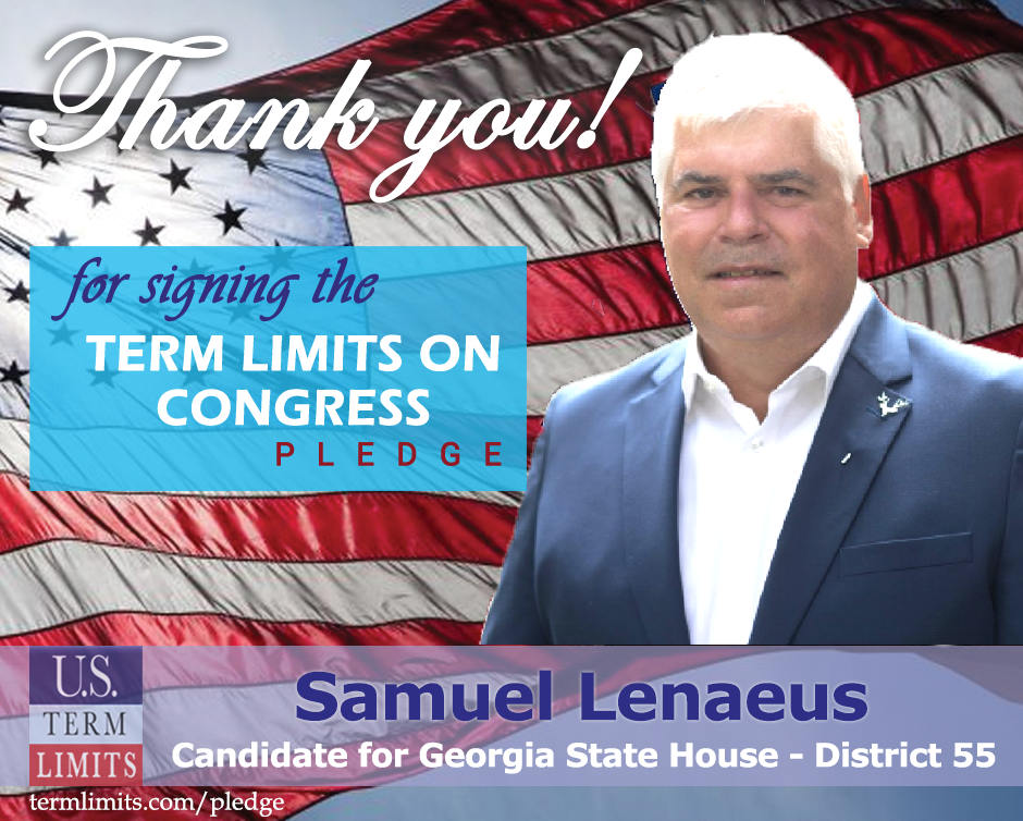 Atlanta, GA– U.S. Term Limits (USTL), the leader in the national, non-partisan movement to limit terms for elected officials, is gathering support from state lawmakers across the nation. Its mission is to get 34 states to apply for an amendment proposal convention specific to term limits on Congress. Georgia state house candidate, Samuel Lenaeus (district 55), has committed support for term limits on Congress by signing the U.S. Term Limits pledge.