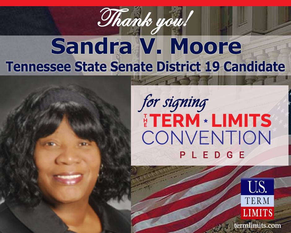 Washington, D.C. – U.S. Term Limits (USTL), the leader in the national, non-partisan movement to limit terms for elected officials, is gathering support from state lawmakers across the nation. Its mission is to get 34 states to apply for an amendment proposal convention specific to term limits on Congress. Tennessee state senate candidate Sandra V. Moore, district 19, has committed her support for term limits on Congress by signing the Term Limits Convention pledge.
