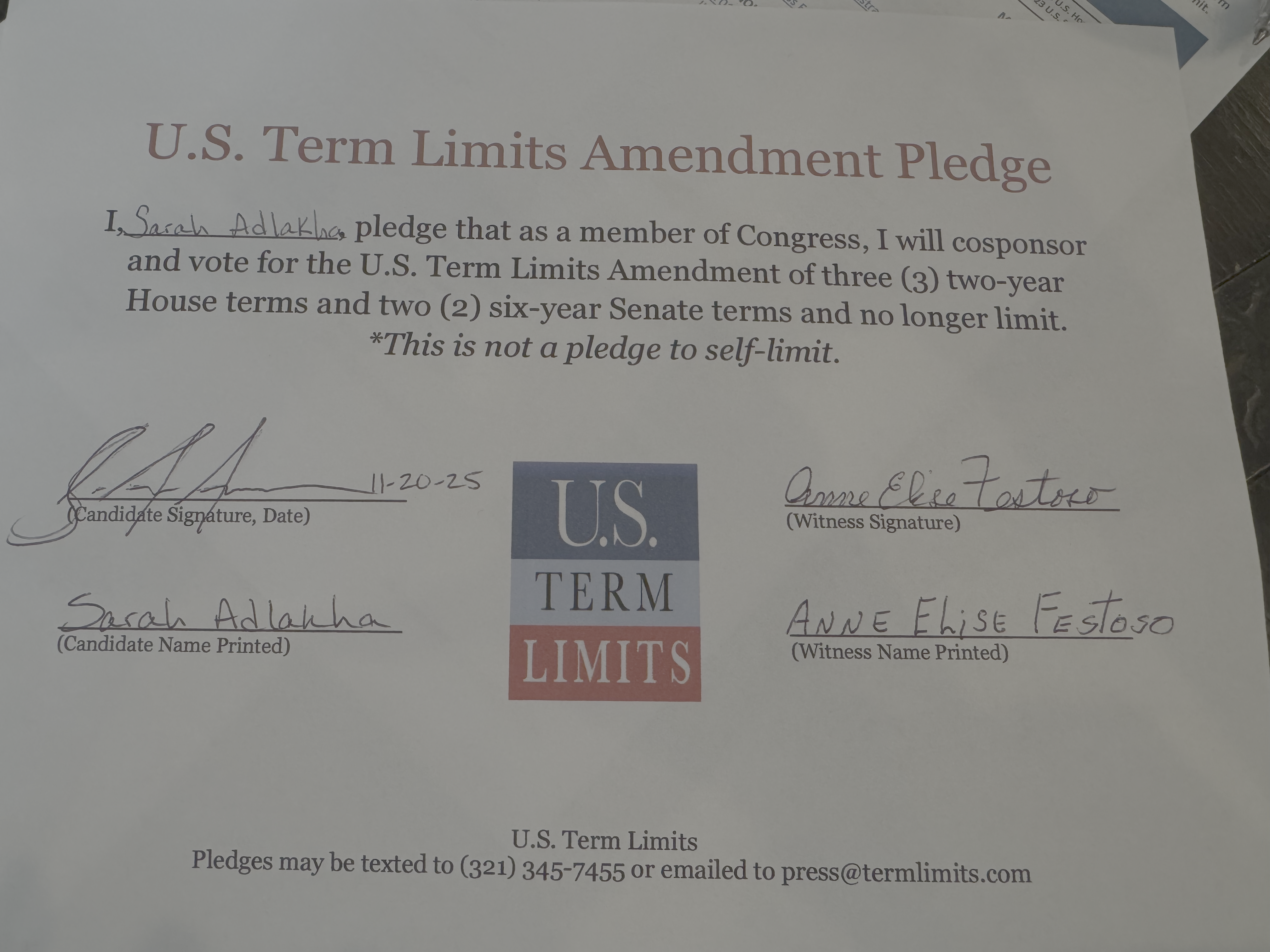 Sarah Adlakha Pledges to Support Congressional Term Limits