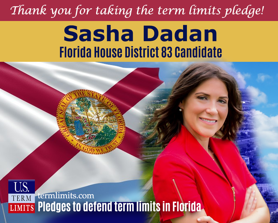 Melbourne, FL – U.S. Term Limits (USTL), the leader in the national, non-partisan movement to limit terms for elected officials, is gathering support from elected officials across Florida. Its mission is to advocate for term limits on all elected officials. State house candidate Sasha Dadan, of district 83, has committed to defend term limits in the Florida legislature by signing the Term Limits pledge. Last week, Toby Overdorf, another candidate in the race, also committed his support to defend term limits statewide.