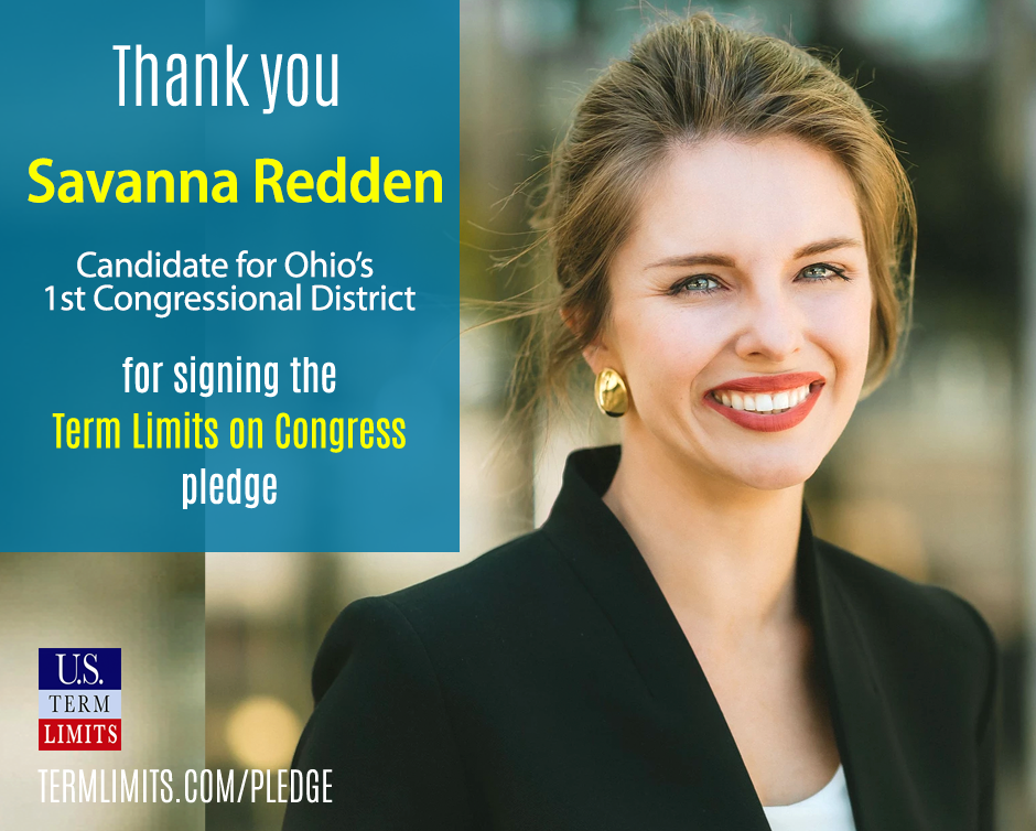 Washington D.C. – U.S. Term Limits (USTL), the leader in the non-partisan national movement to limit terms for elected officials, praises 2022 U.S. house candidate for Ohio, Savanna Redden (district 1), for signing the pledge for an amendment to term limit Congress. Previously, current U.S. House Representative Steve Chabot also signed the pledge.