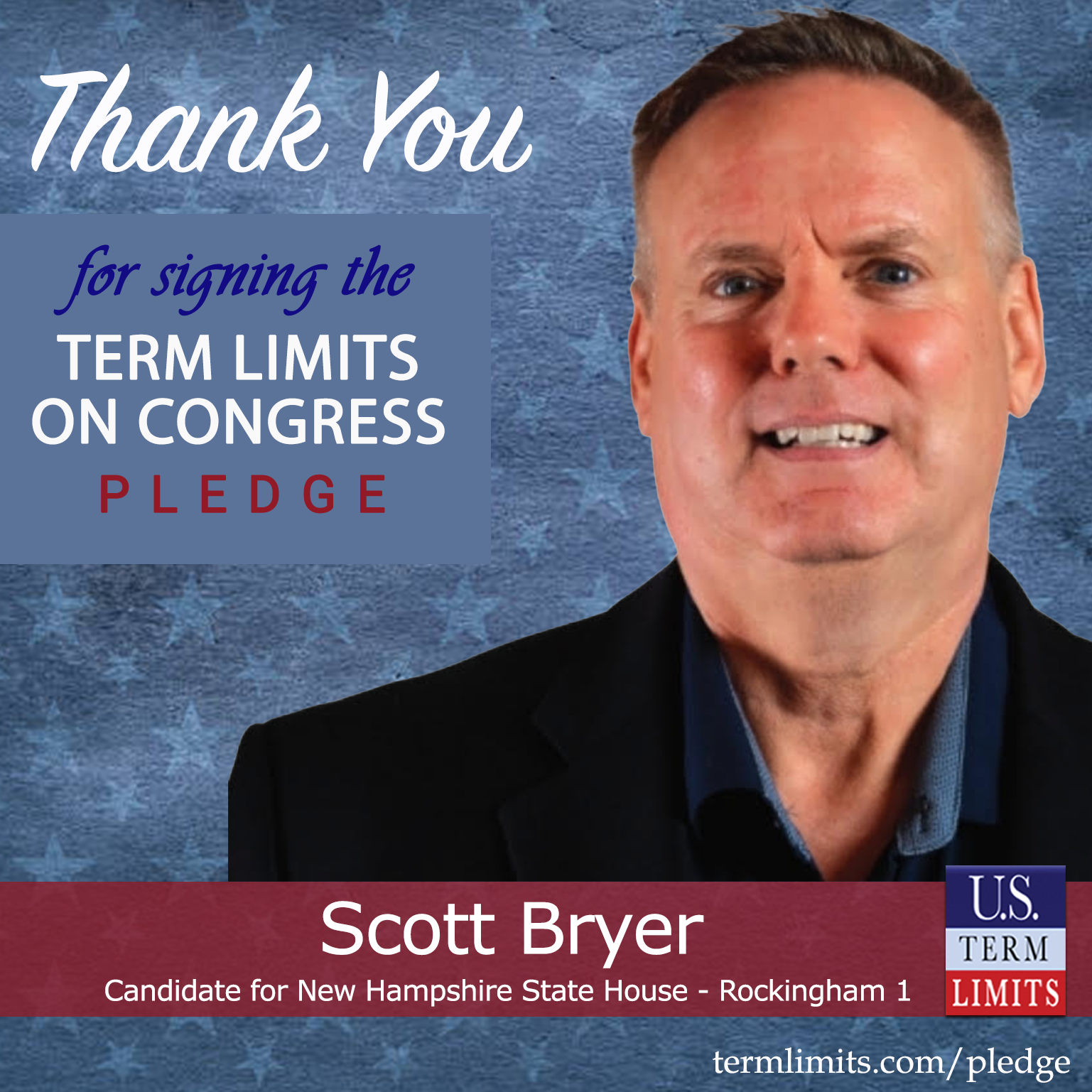 Nottingham, NH – U.S. Term Limits (USTL), the leader in the national, non-partisan movement to limit terms for elected officials, is gathering support from state lawmakers across the nation. Its mission is to get 34 states to apply for an amendment proposal convention specific to term limits on Congress. New Hampshire state house candidate, Scott Bryer (Rockingham 1), has committed support for term limits on Congress by signing the term limits convention pledge.