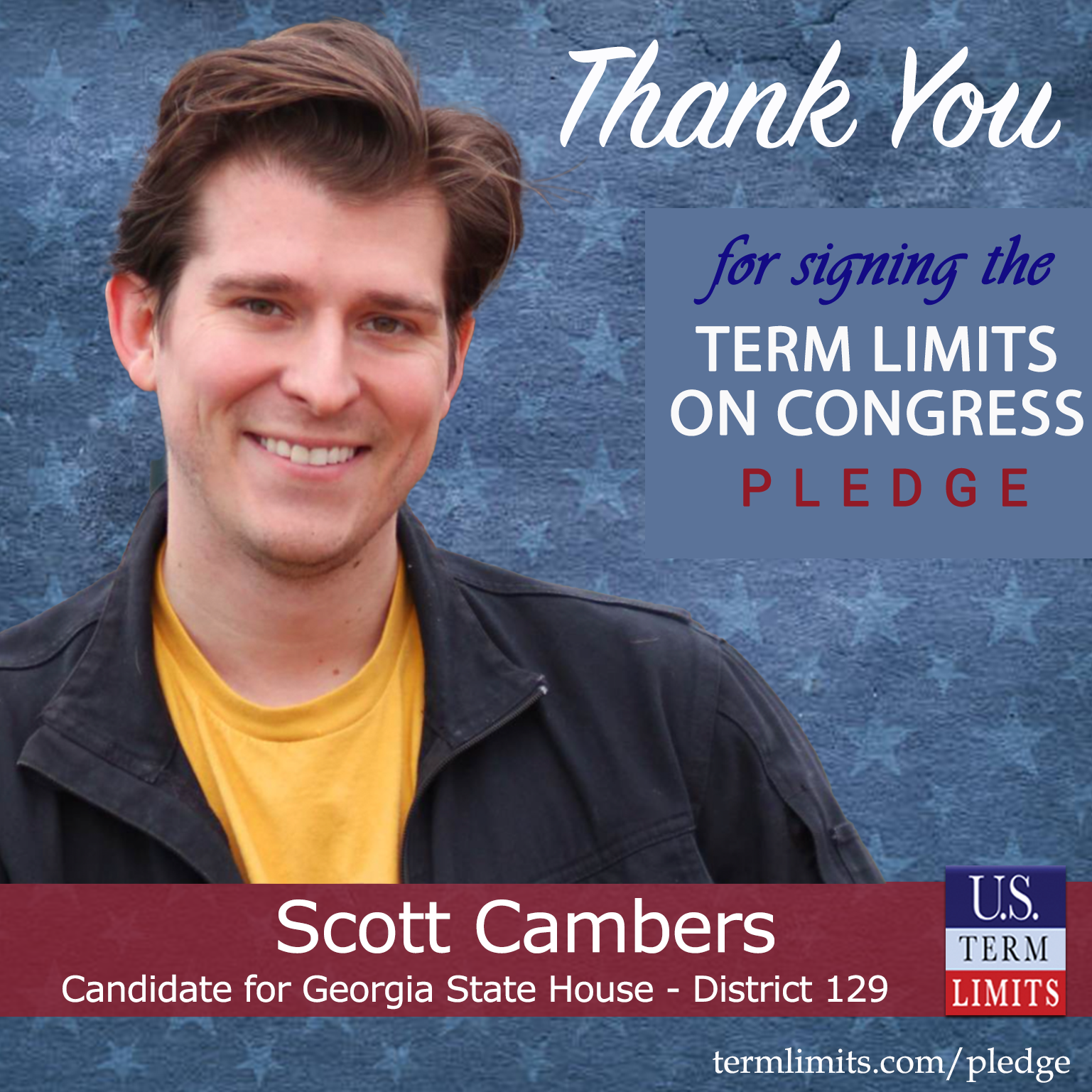 Augusta, GA – U.S. Term Limits (USTL), the leader in the national, non-partisan movement to limit terms for elected officials, is gathering support from state lawmakers across the nation. Its mission is to get 34 states to apply for an amendment proposal convention specific to term limits on Congress. Georgia state house candidate, Scott Cambers (District 129), has committed support for term limits on Congress by signing the Term Limits Convention Pledge.