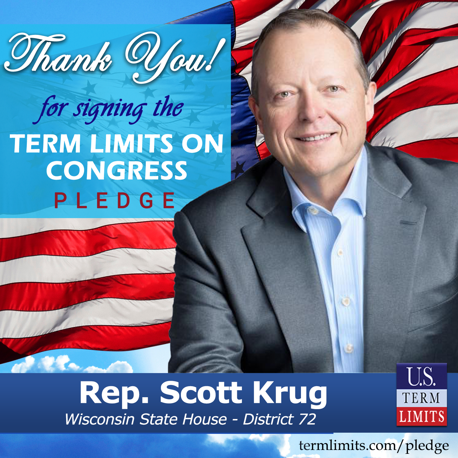 USTL President, Philip Blumel, commented on Krug’s pledge saying, “Scott’s strong support of term limits shows that there are individuals who are willing to listen to the majority of voters who want term limits. America needs a Congress that will be served by citizen legislators, not career politicians.”