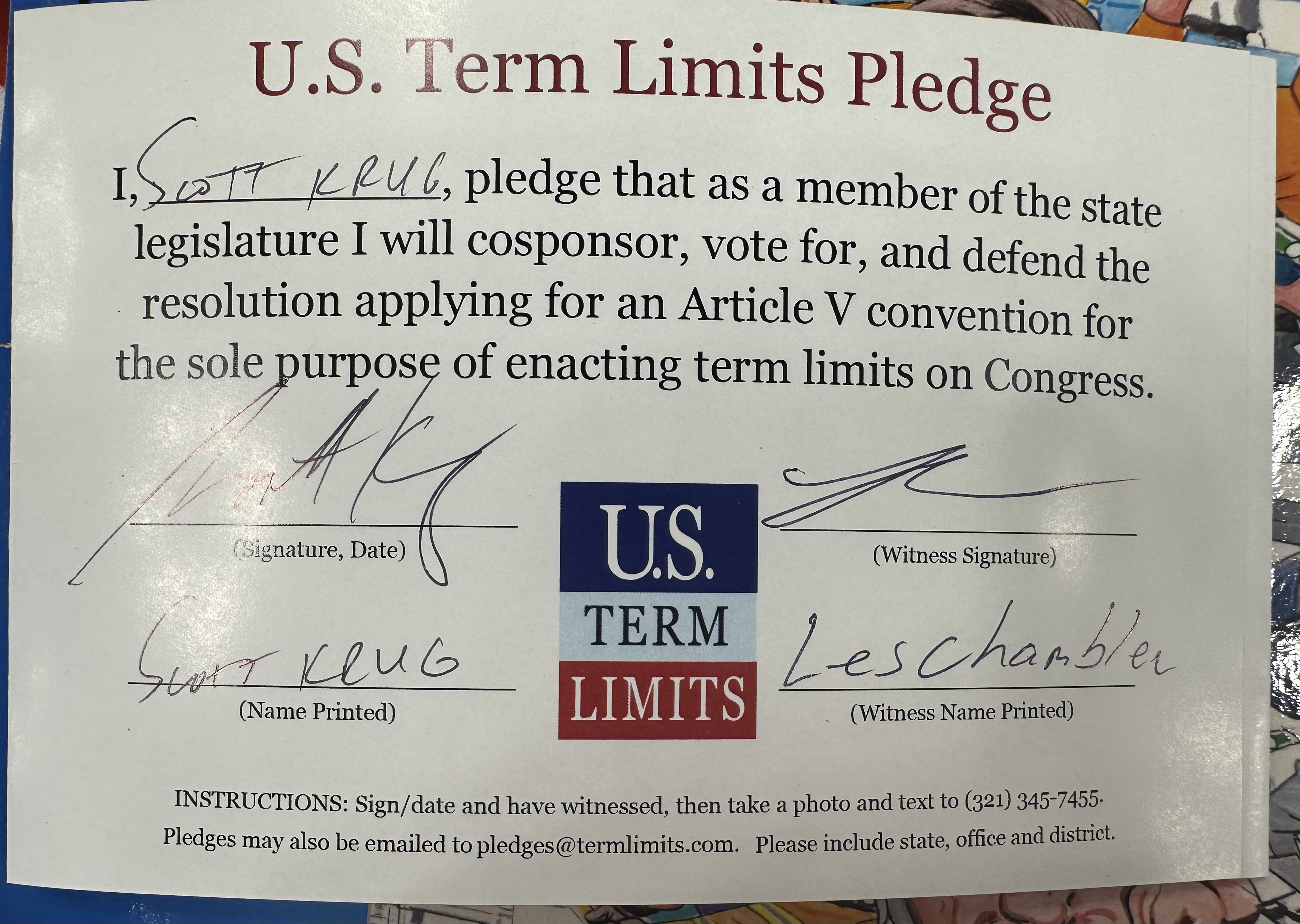 Rep. Scott Krug Pledges to Support Congressional Term Limits