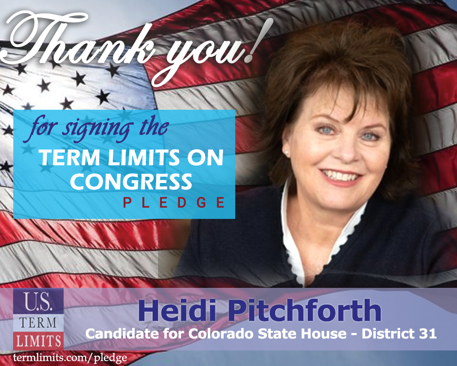 The U.S. Term Limits pledge is provided to candidates and members of state legislatures. It reads, “I pledge that, as a member of the state legislature, I will cosponsor, vote for, and defend the resolution applying for an Article V convention for the limited purpose of enacting term limits on Congress.”