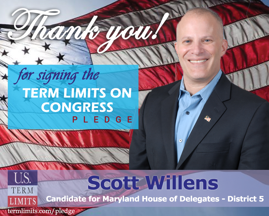 Baltimore, MD – U.S. Term Limits (USTL), the leader in the national, non-partisan movement to limit terms for elected officials, is gathering support from state lawmakers across the nation. Its mission is to get 34 states to apply for an amendment proposal convention specific to term limits on Congress. Maryland state house candidate, Scott Willens (district 5), has committed support for term limits on Congress by signing the Term Limits Convention pledge. Willens is the first signer in this race.