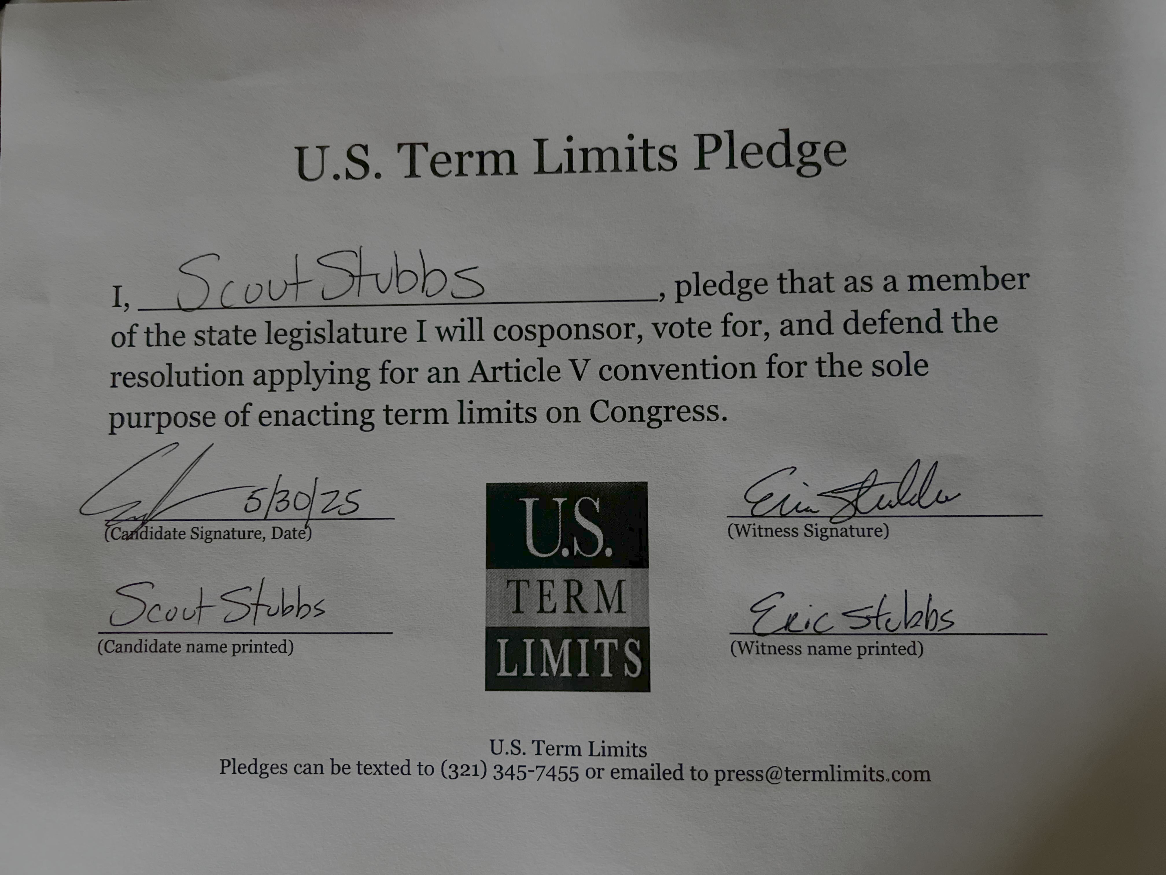 Scout Stubbs Pledges to Support Congressional Term Limits