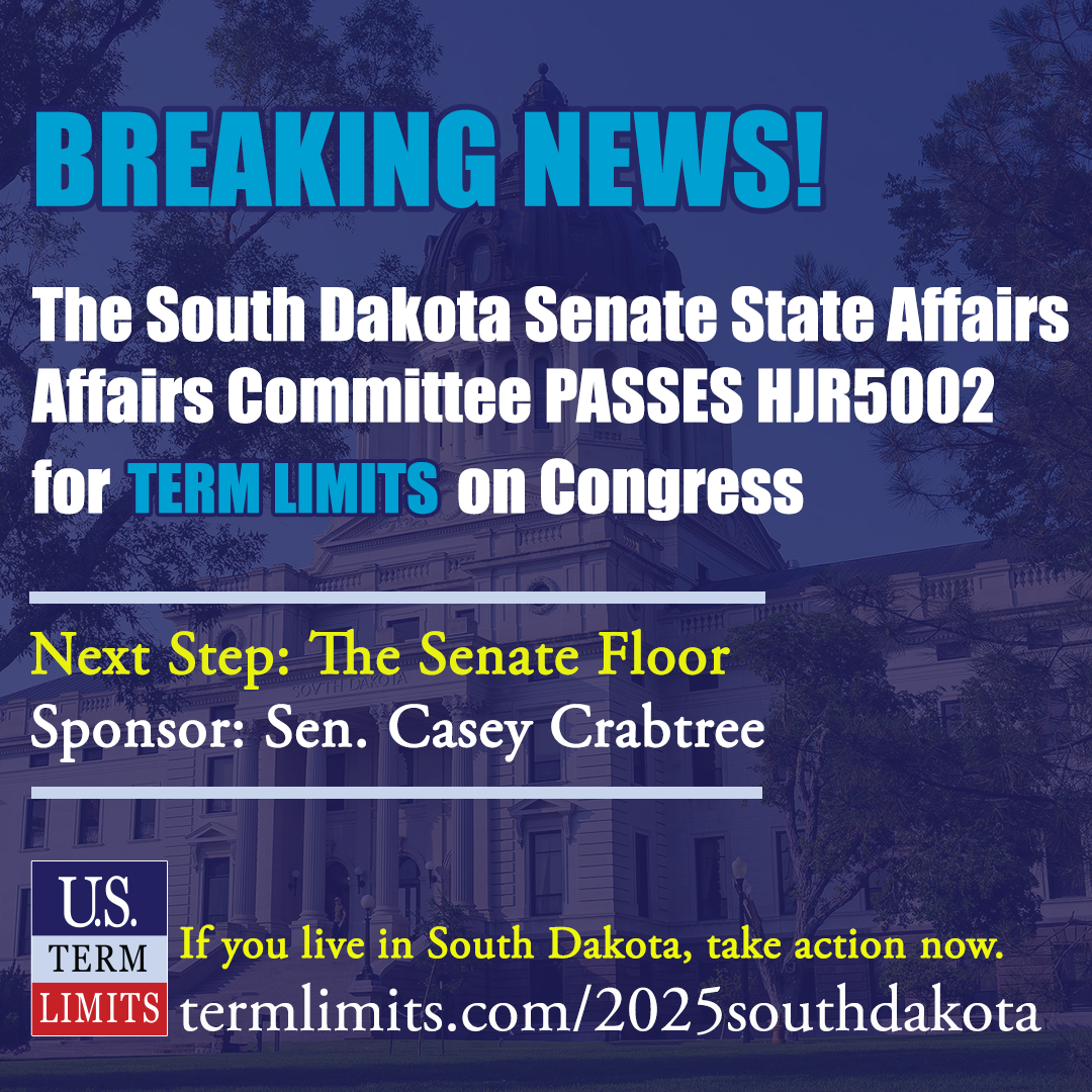 As U.S. Term Limits’ President Philip Blumel put it, “The people of South Dakota are lucky to have public servants who see what is going on in D.C. and are willing to take action to fix it. They know that Congress won’t set term limits on itself. Therefore, it is the obligation of the states to do so.”