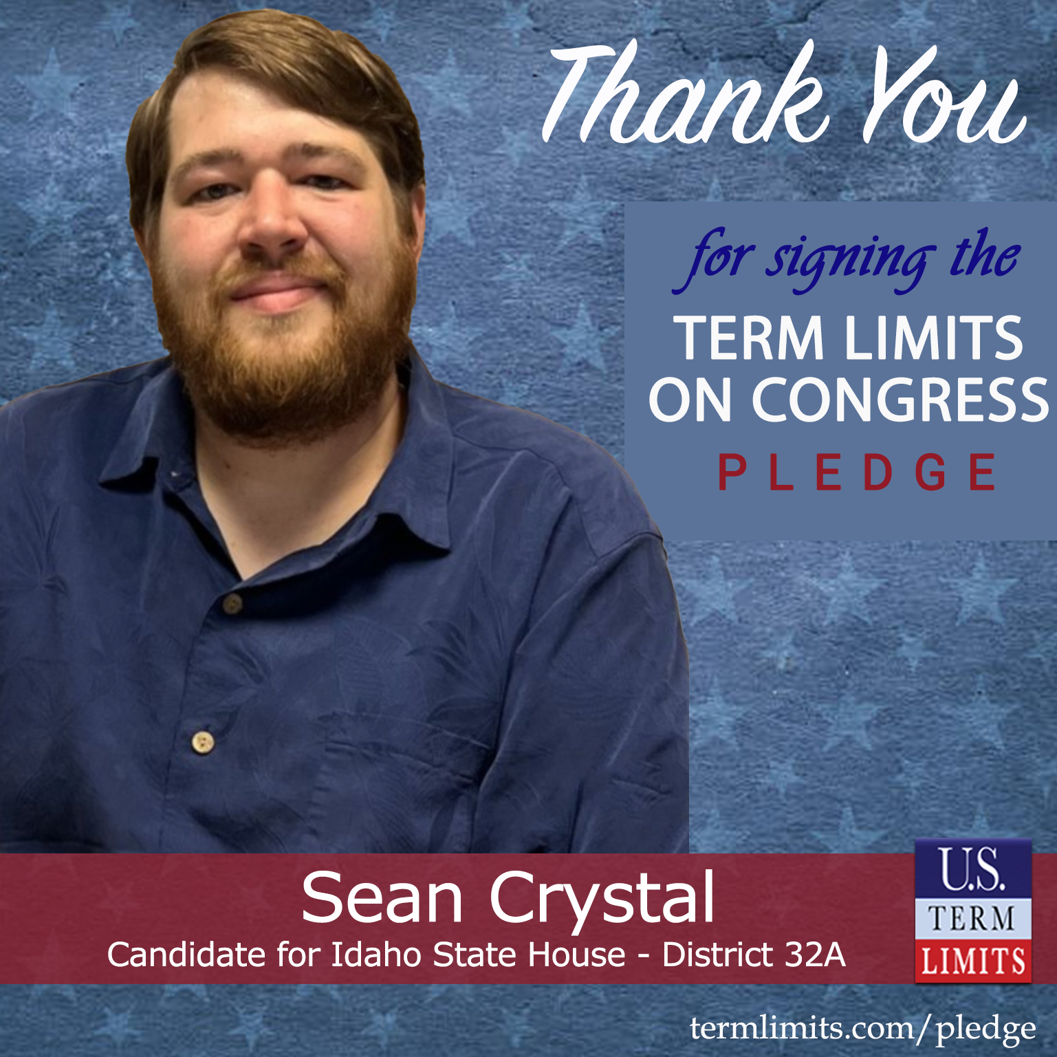 Idaho Falls, ID – U.S. Term Limits (USTL), the leader in the national, non-partisan movement to limit terms for elected officials, is gathering support from state lawmakers across the nation. Its mission is to get 34 states to apply for an amendment proposal convention specific to term limits on Congress. Idaho state house candidate, Sean Crystal (District 32A), has committed support for term limits on Congress by signing the Term Limits Convention Pledge. Crystal is the first signer in this race.