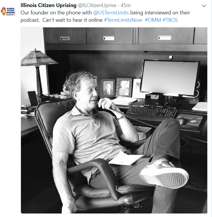 80% of Illinoisans want term limits yet term limits never make it on the ballot. This should make you mad as hell. Will you follow Jim’s one man march either in person or on social media?