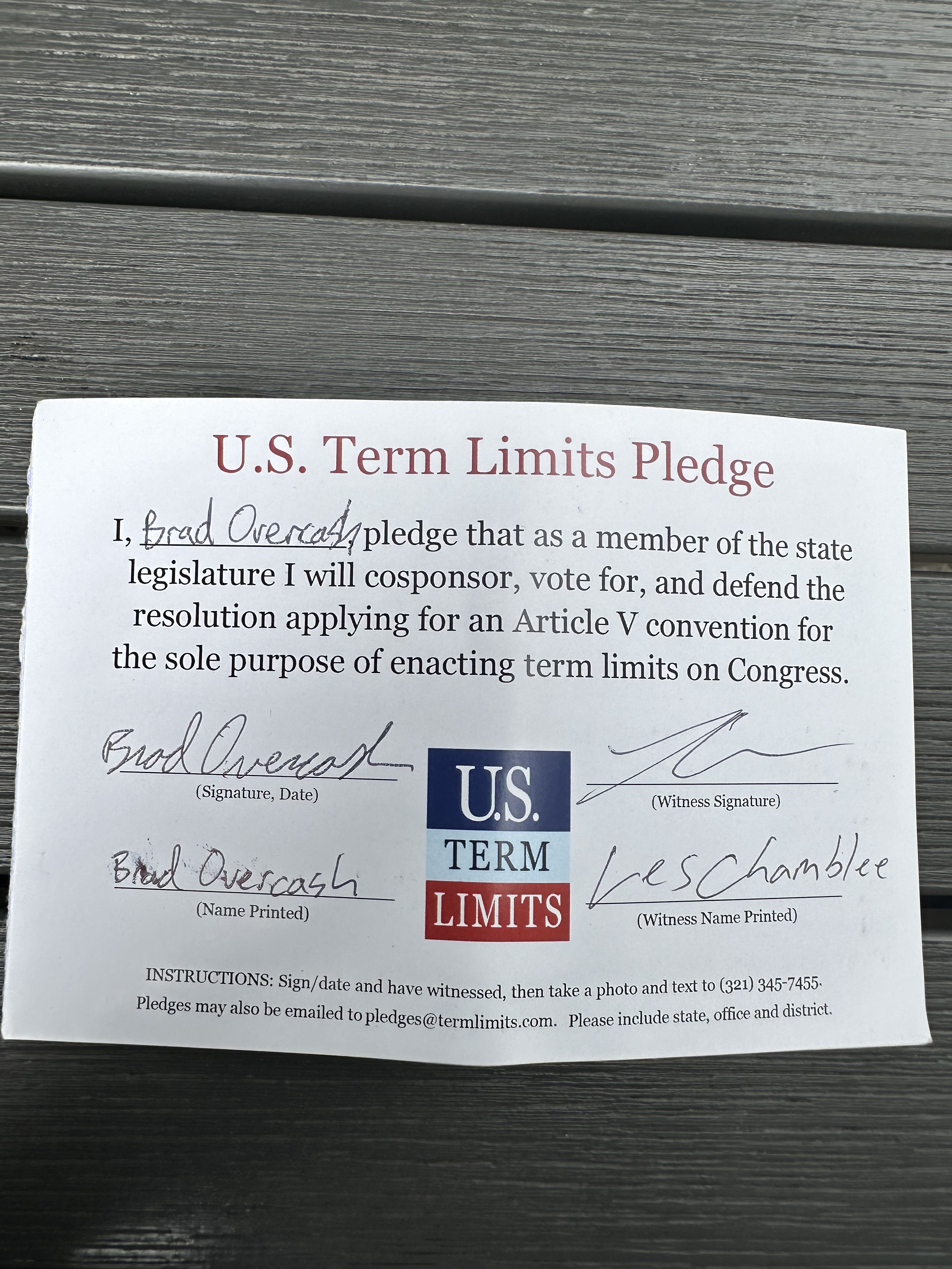 Senator Brad Overcash Pledges to Support Congressional Term Limits