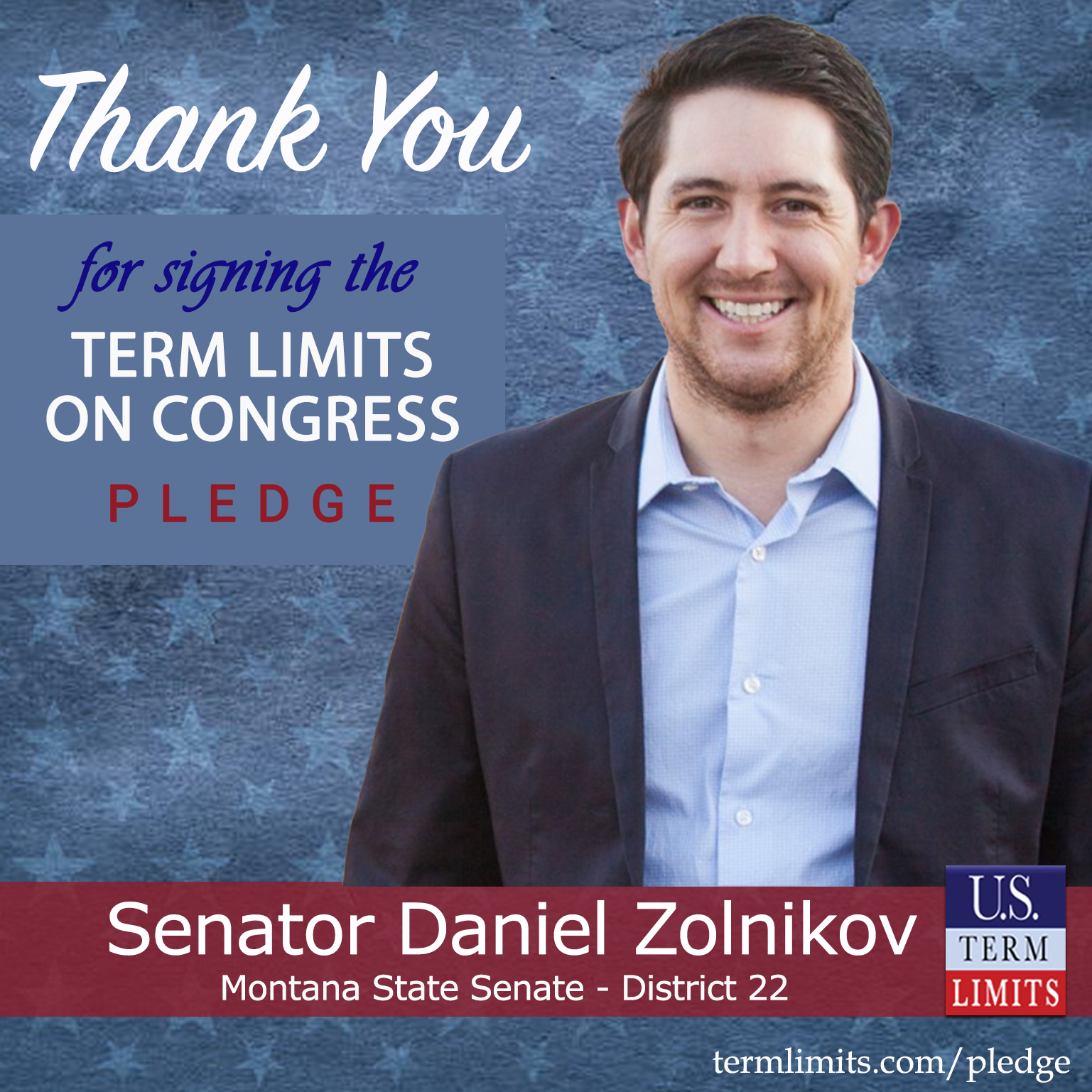Billings, MT – U.S. Term Limits (USTL), the leader in the national, non-partisan movement to limit terms for elected officials, is gathering support from state lawmakers across the nation. Its mission is to get 34 states to apply for an amendment proposal convention specific to term limits on Congress. 2025 Montana state Senator Daniel Zolnikov (district 22), has committed support for term limits on Congress by signing the term limits convention pledge.