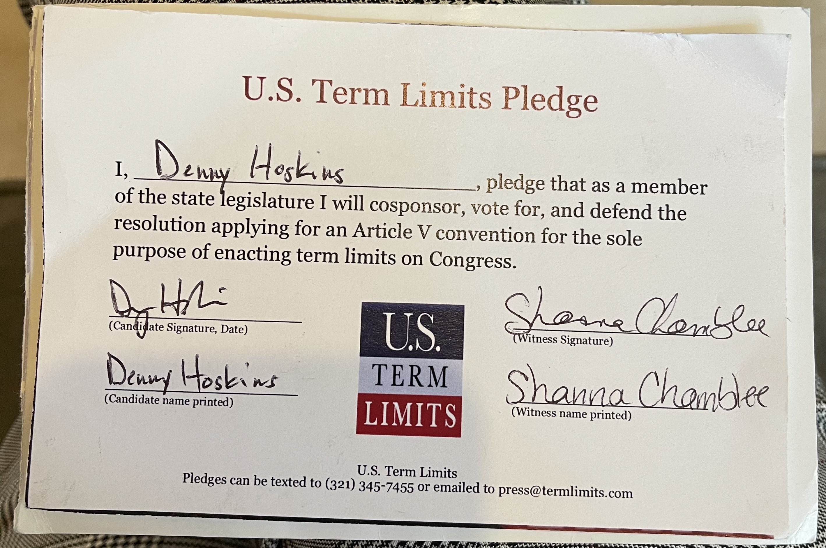 Senator Denny Hoskins Pledges to Support Congressional Term Limits