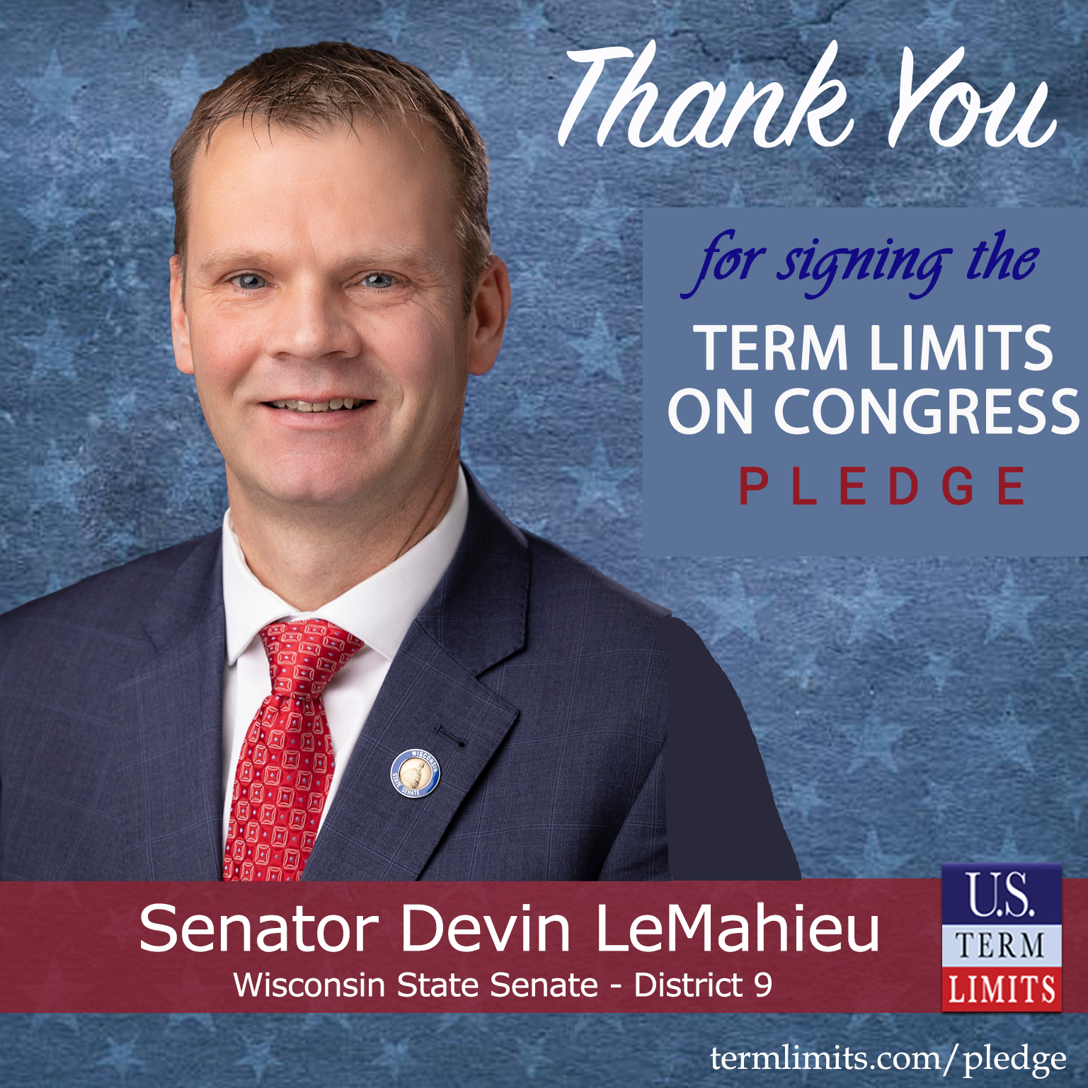Sheboygan, WI – U.S. Term Limits (USTL), the leader in the national, non-partisan movement to limit terms for elected officials, is gathering support from state lawmakers across the nation. Its mission is to get 34 states to apply for an amendment proposal convention specific to term limits on Congress. Wisconsin state Senator Devin LeMahieu (district 9), has committed support for term limits on Congress by signing the term limits convention pledge.