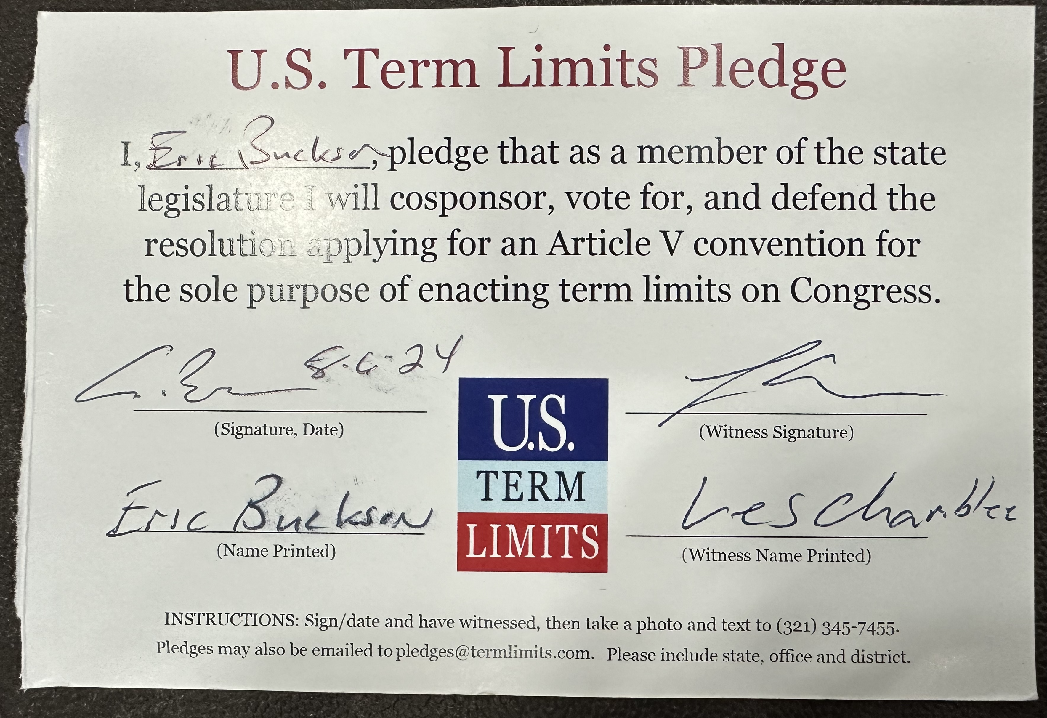 Senator Eric Buckson Pledges to Support Congressional Term Limits