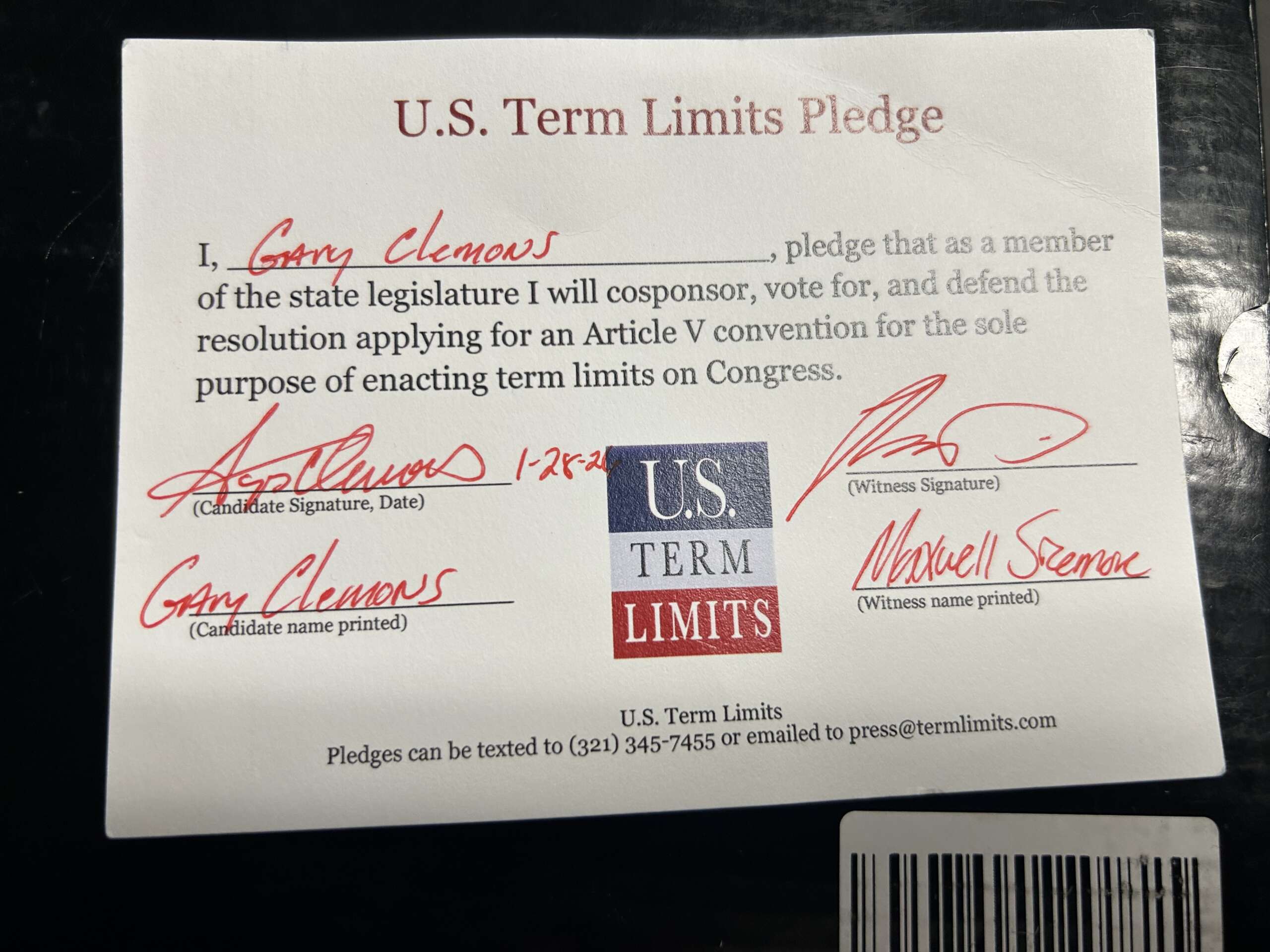 Senator Gary Clemons Pledges to Support Congressional Term Limits
