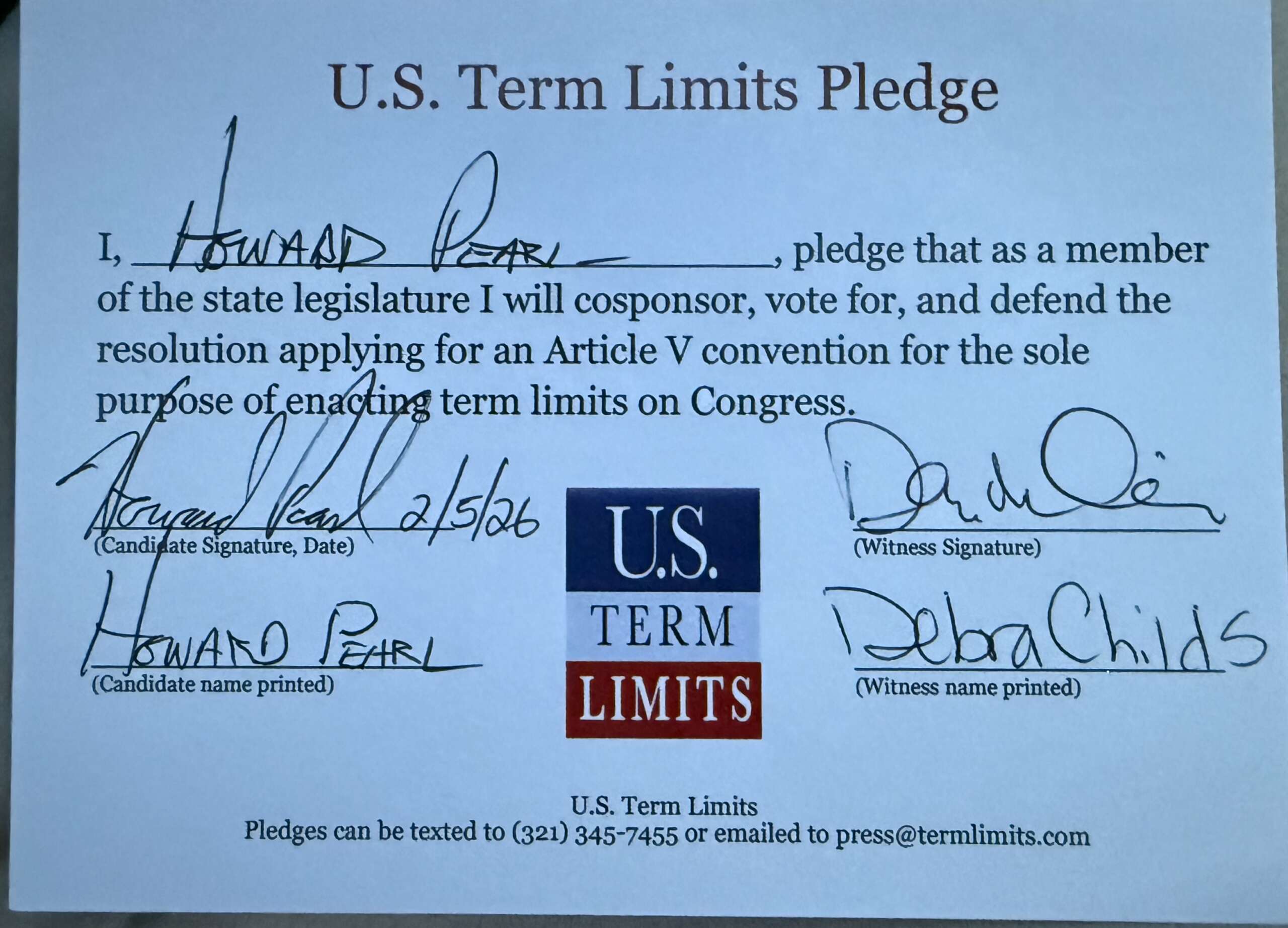 Senator Howard Pearl Pledges to Support Congressional Term Limits