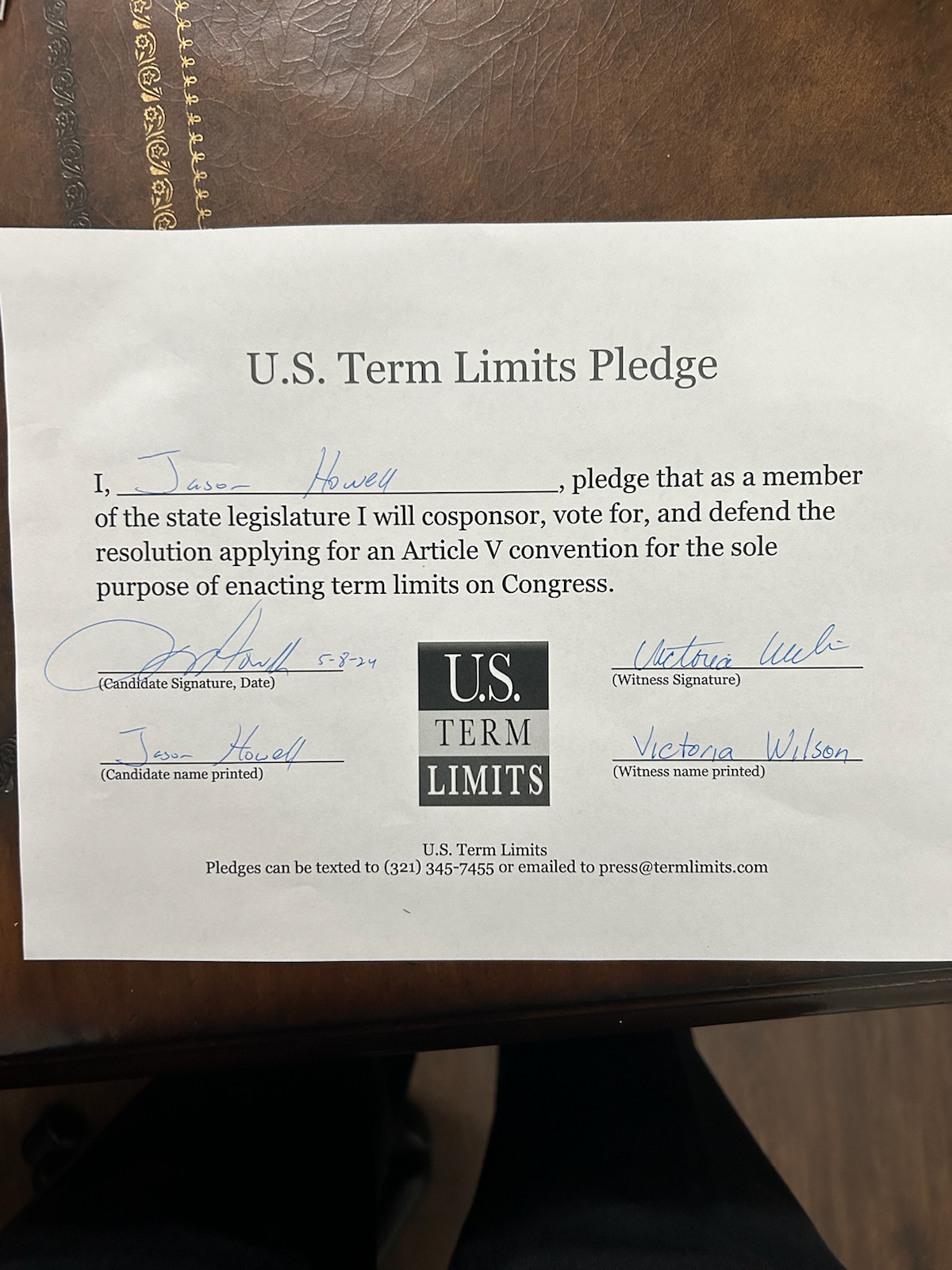 Senator Jason Howell Pledges to Support Congressional Term Limits