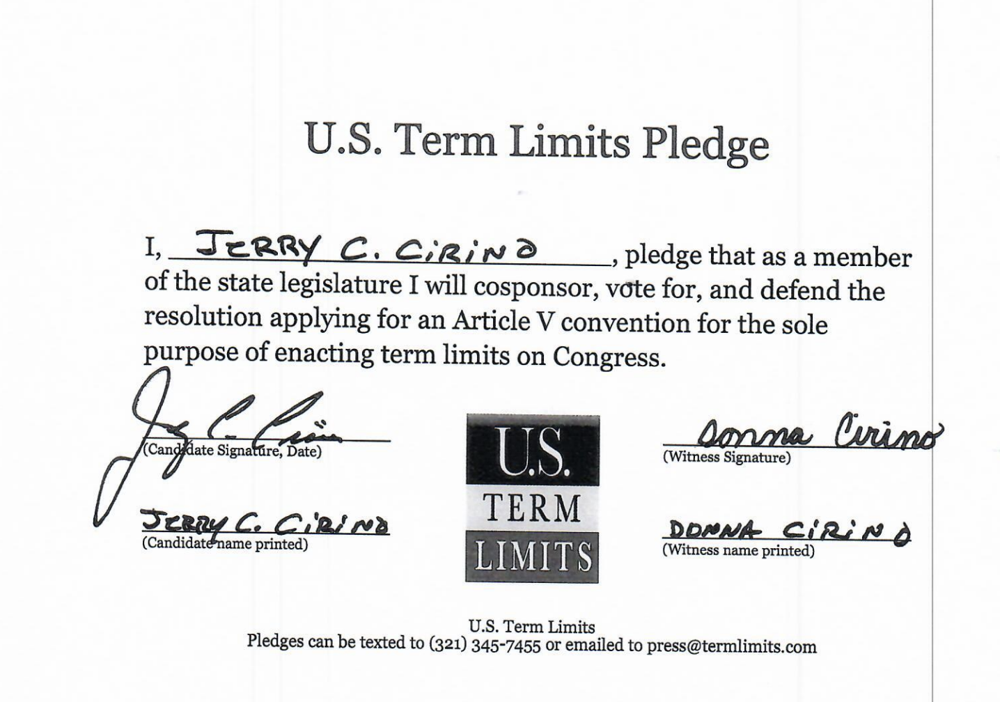 Senator Jerry Cirino Pledges to Support Congressional Term Limits