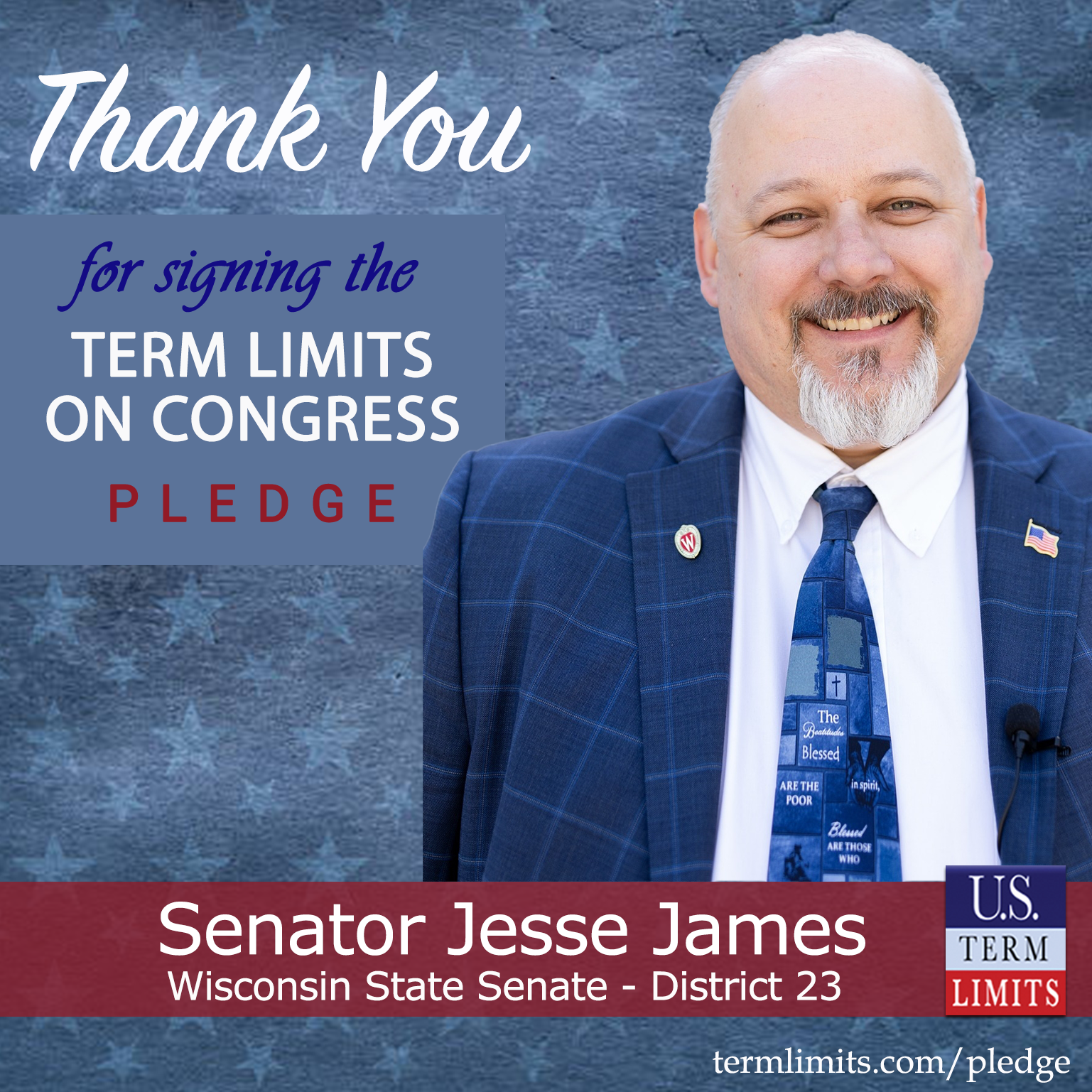 Ladysmith, WI  – U.S. Term Limits (USTL), the leader in the national, non-partisan movement to limit terms for elected officials, is gathering support from state lawmakers across the nation. Its mission is to get 34 states to apply for an amendment proposal convention specific to term limits on Congress. 2025 Wisconsin state Senator Jesse James (district 23), has committed support for term limits on Congress by signing the term limits convention pledge.