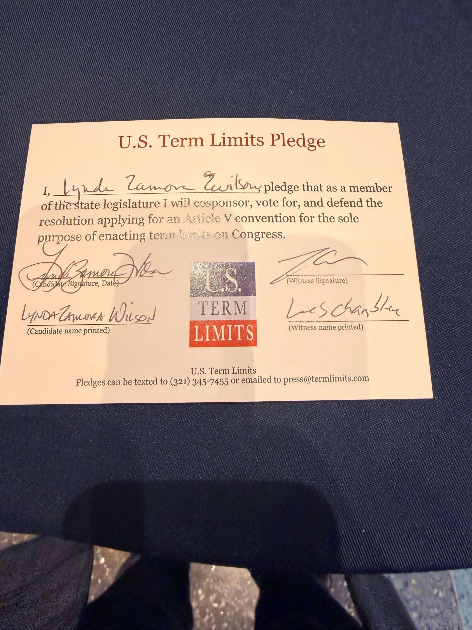 Senator Lynda Zamora Wilson Pledges to Support Congressional Term Limits
