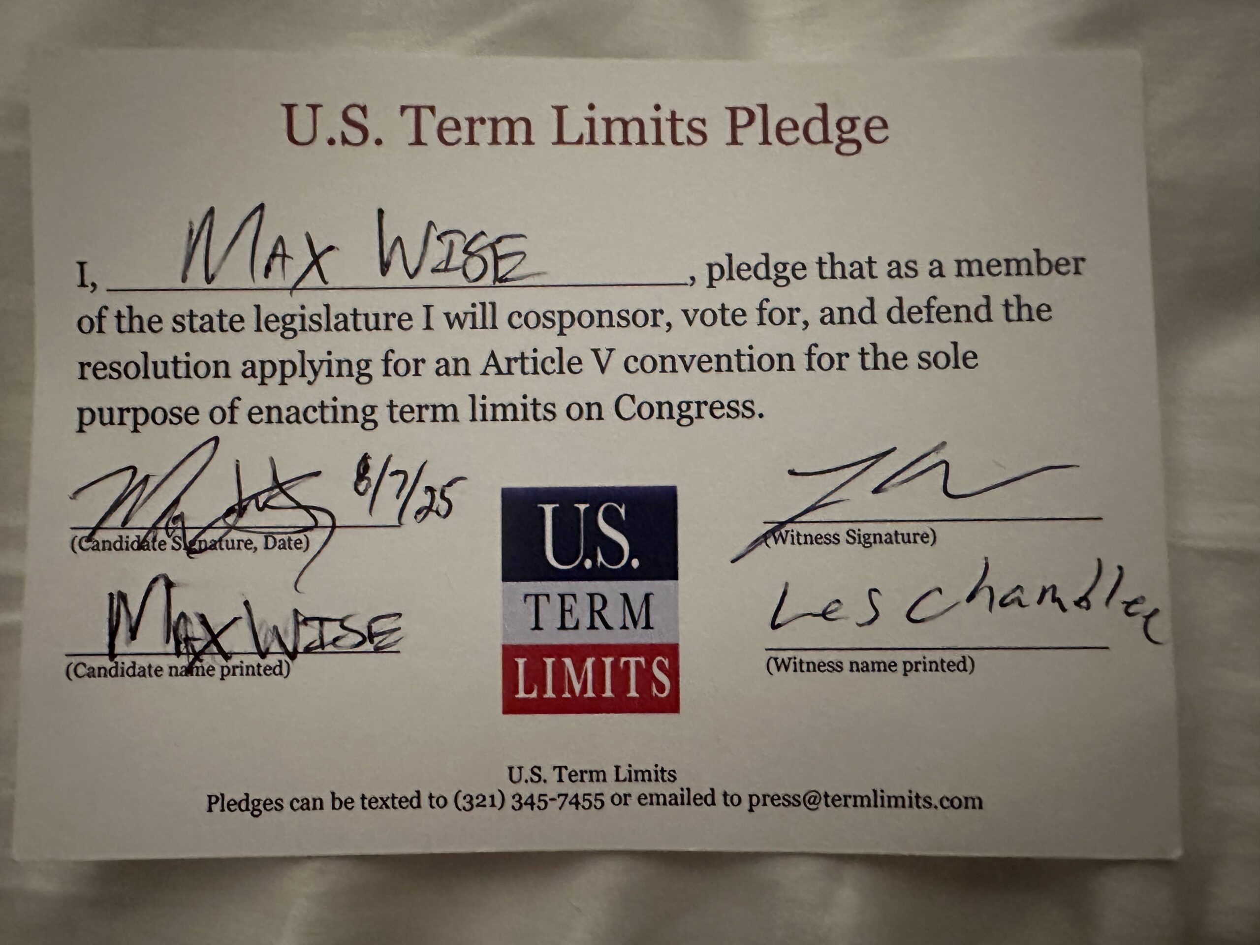 *U.S. Term Limits does not endorse candidates. Candidates who sign the pledge endorse term limits.