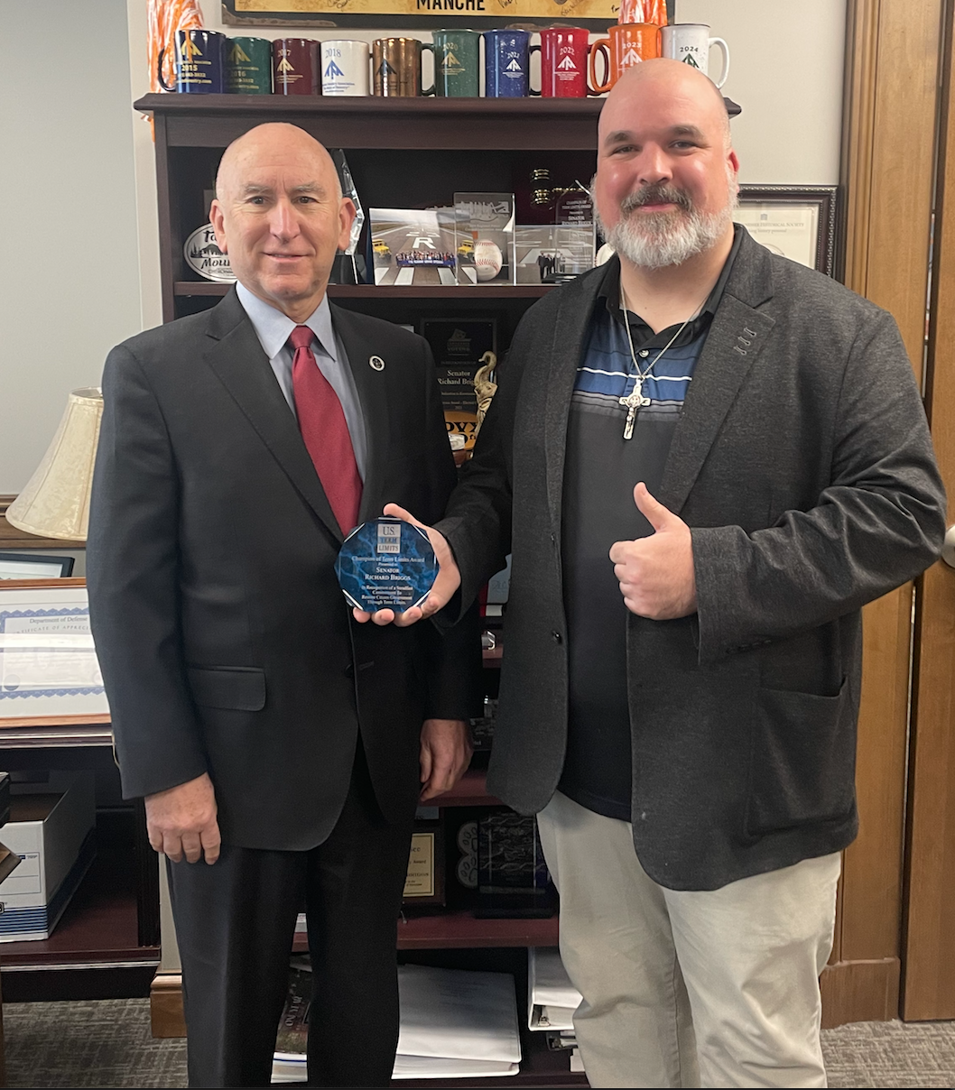 Aaron Dukette of U.S. Term Limits presented the distinction to Senator Richard Briggs. The “Champion of Term Limits” plaque reads, “In recognition of a steadfast commitment to restore citizen government through term limits.” Briggs pledged to support house joint resolution 5 (HJR5) which is scheduled for a committee vote next week.