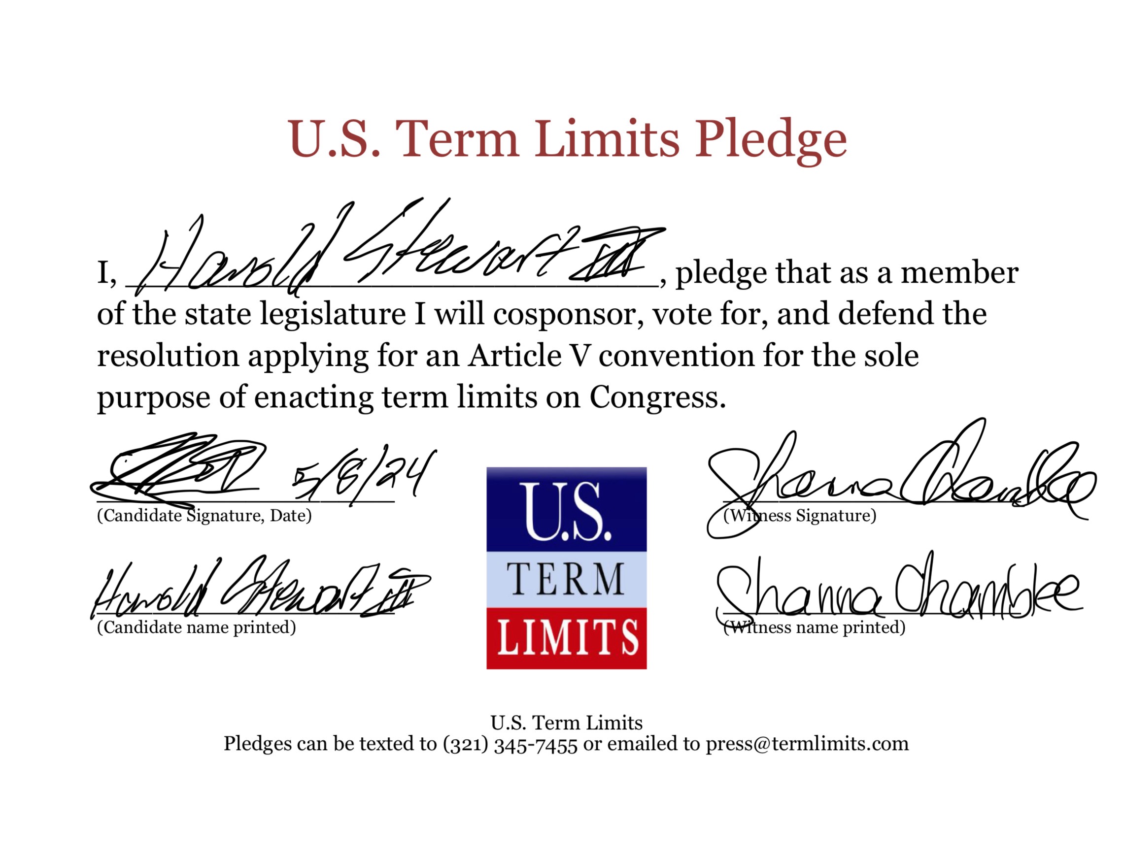 Senator Trey Stewart Pledges to Support Congressional Term Limits