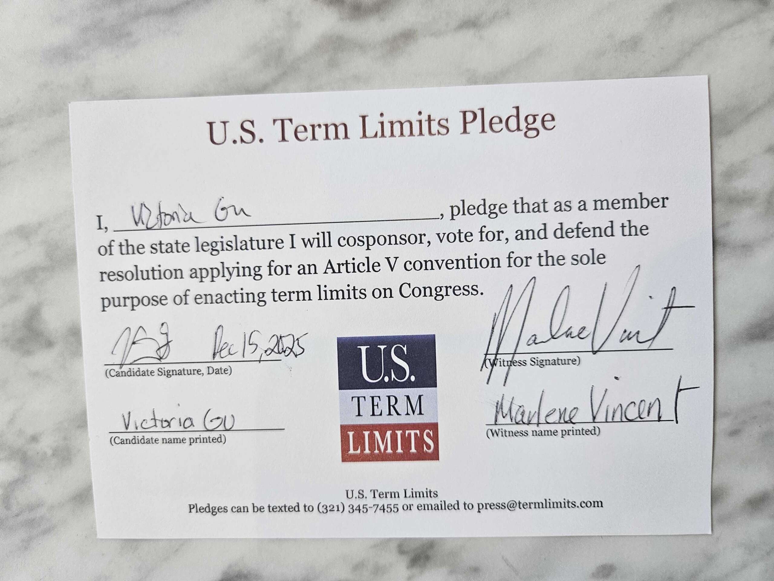 Senator Victoria Gu Pledges to Support Congressional Term Limits